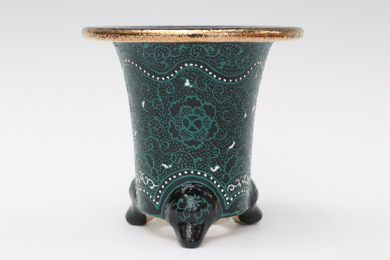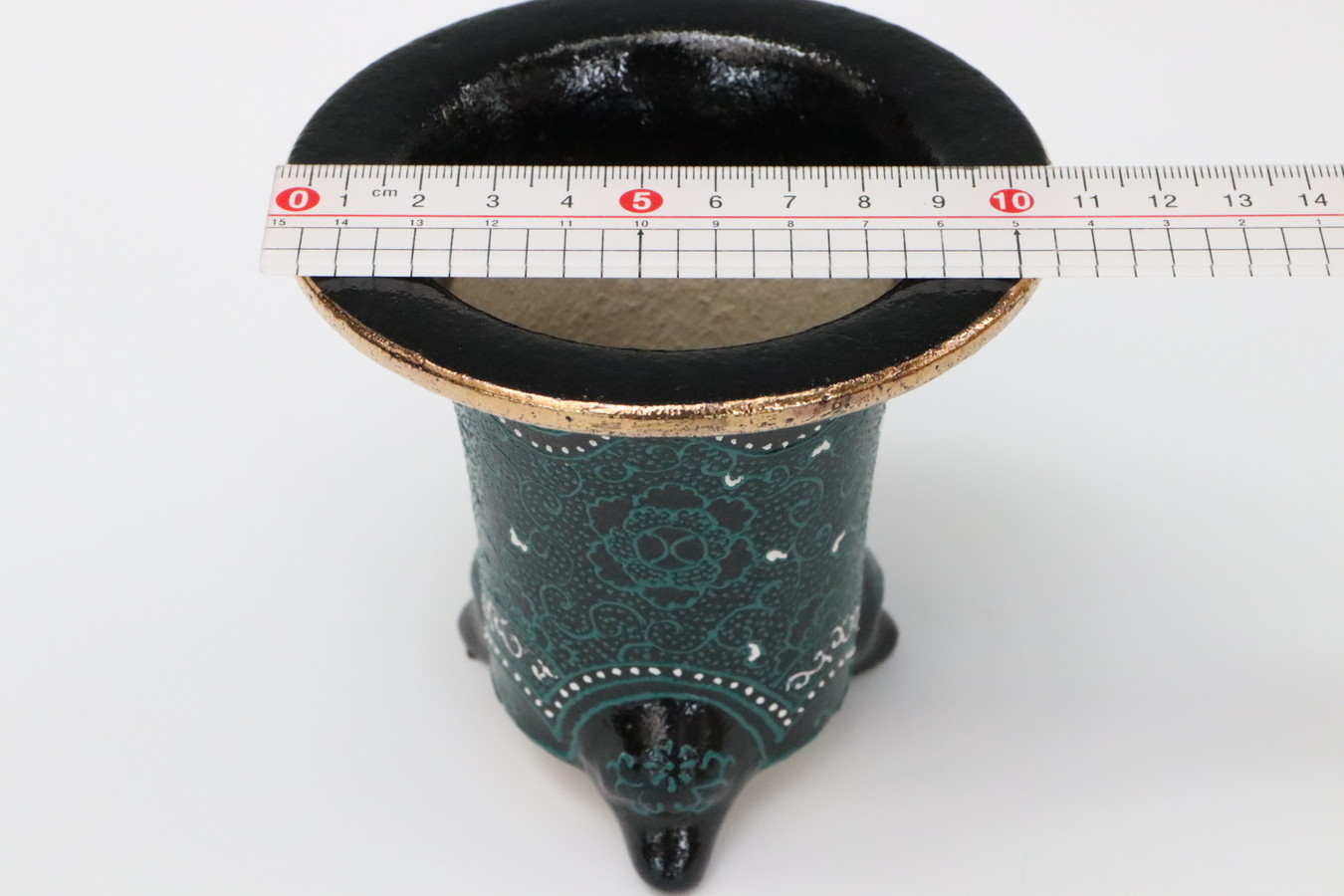 2265,吉祥唐草 萬年青錦鉢 外径約10.7cm 梅花サイン これだけの線の細さはない