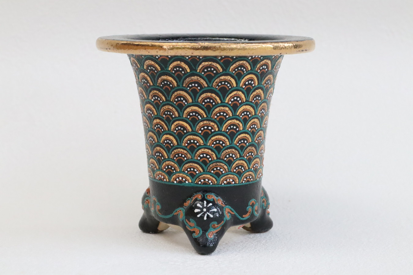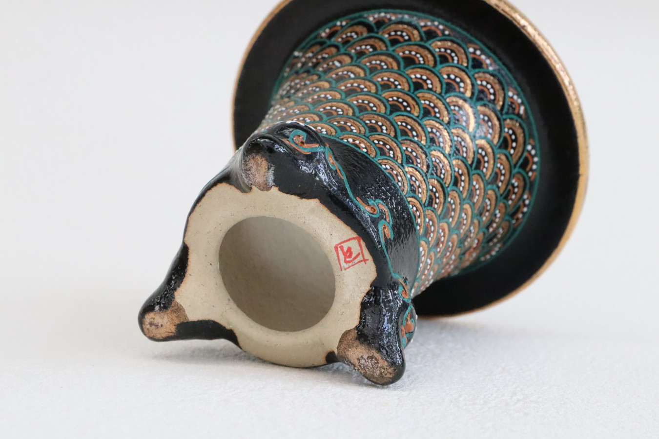 2507, 金青海波 萬年青楽鉢 外径約9.6cm 角とサイン