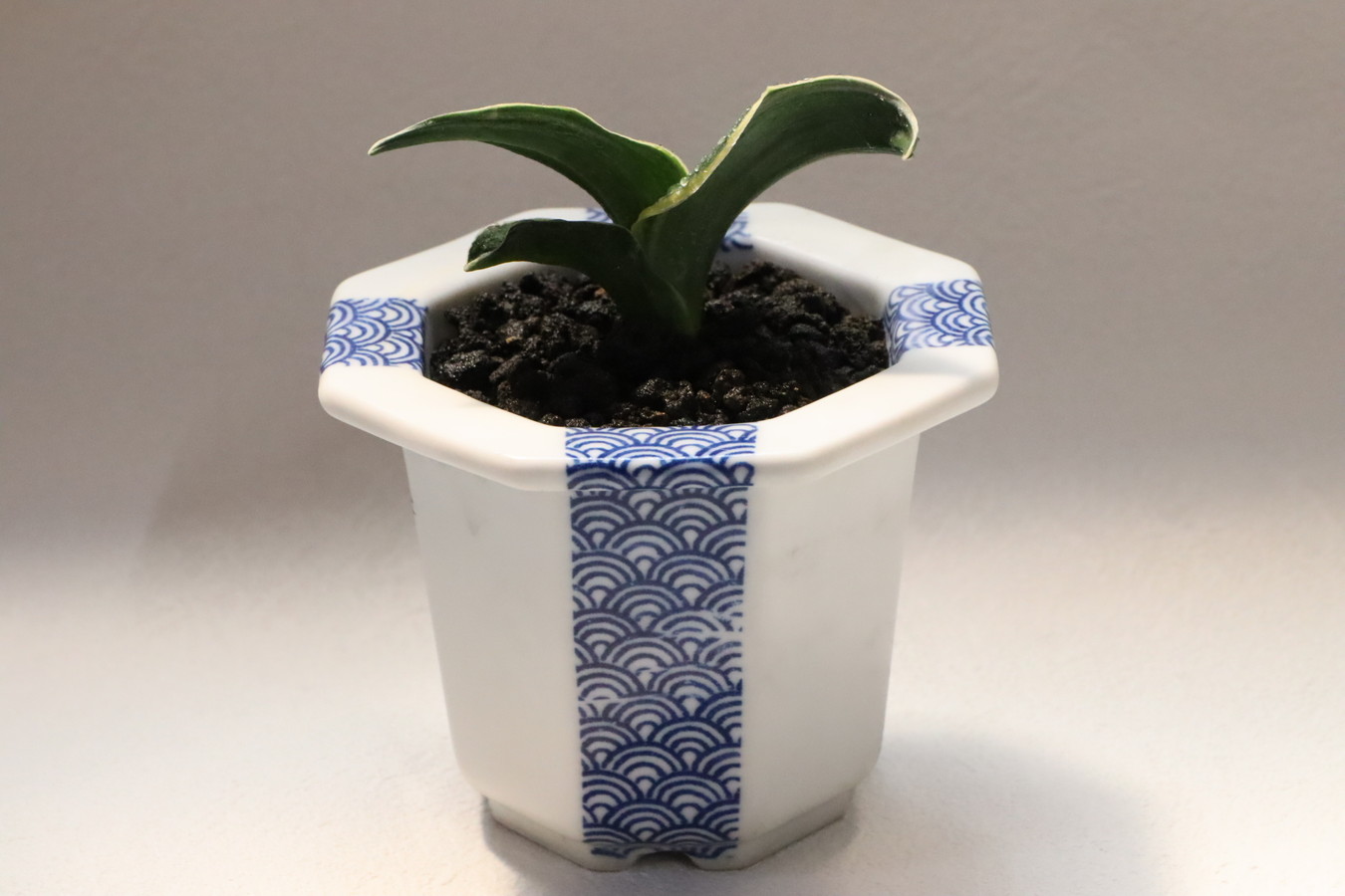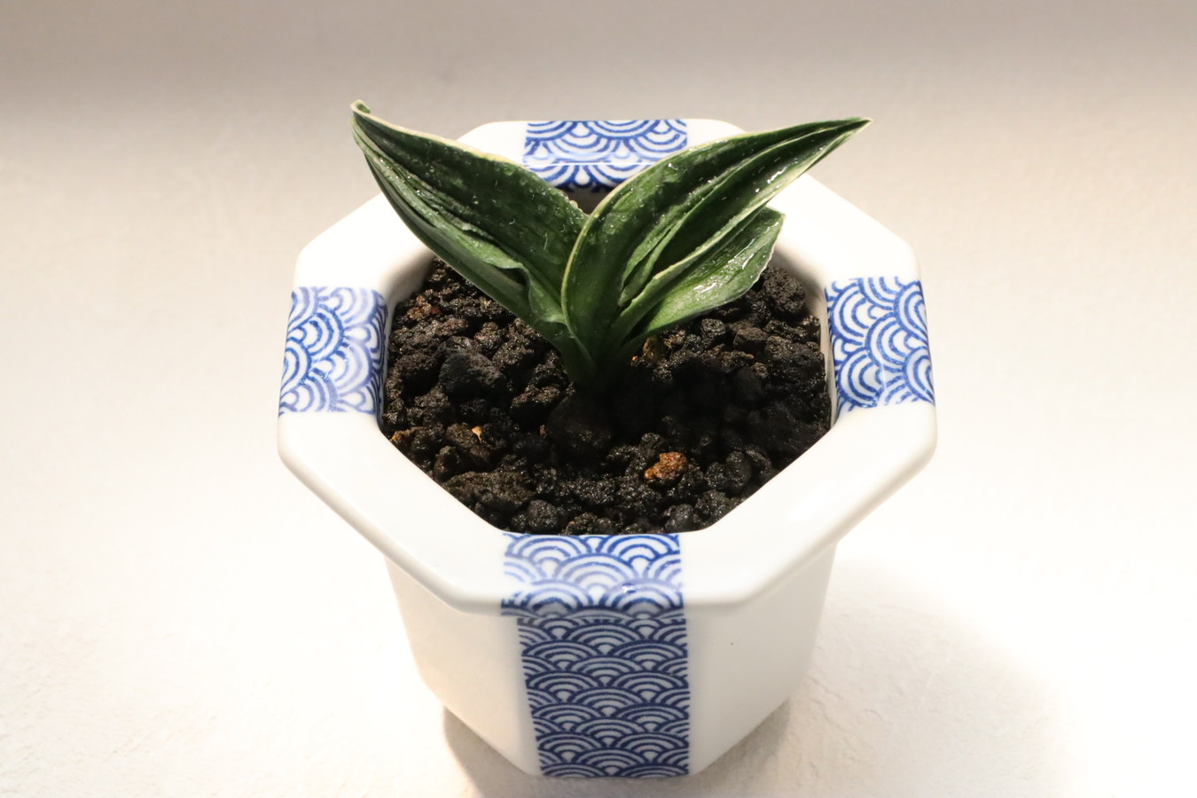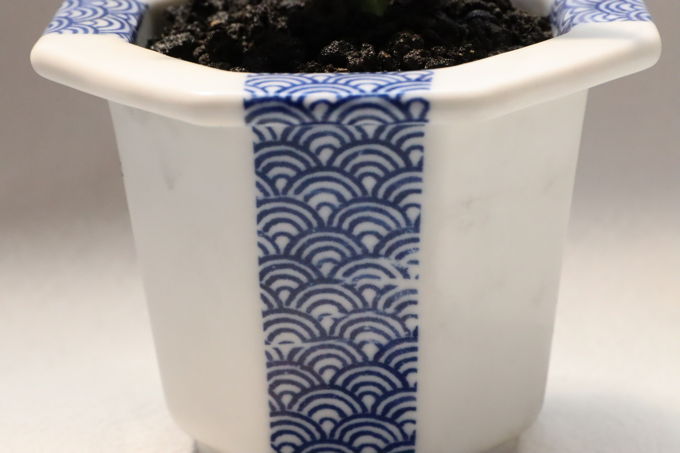 鉢は【青海波】となっていて、これは永遠によいことが続いていくように、という願いが込められています。万年青の名前が万年、青々と繁栄していく様を万年青というように、非常に縁起良いお祝いの贈り物や新築祝い、記念の品です。