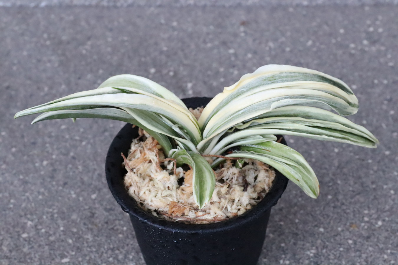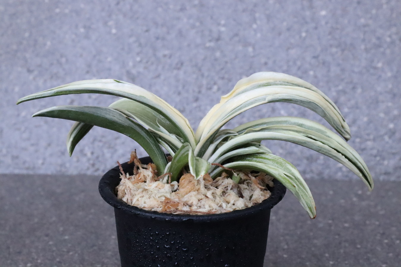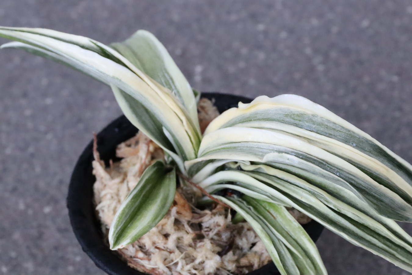この『和光錦』はこの和の意味の通り、なごやかで人の心をやわらげる品種です。柔和な黄色の覆輪は優しく、素晴らしい芸を見せますが、落ち着いていて、みていてあきない品種です。