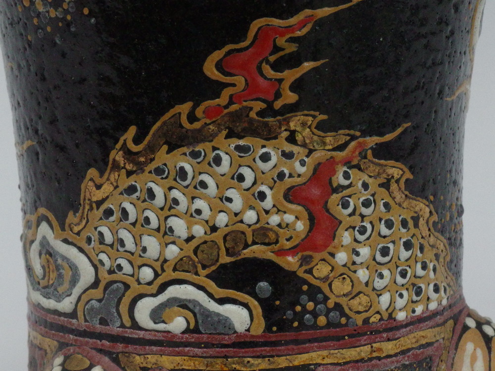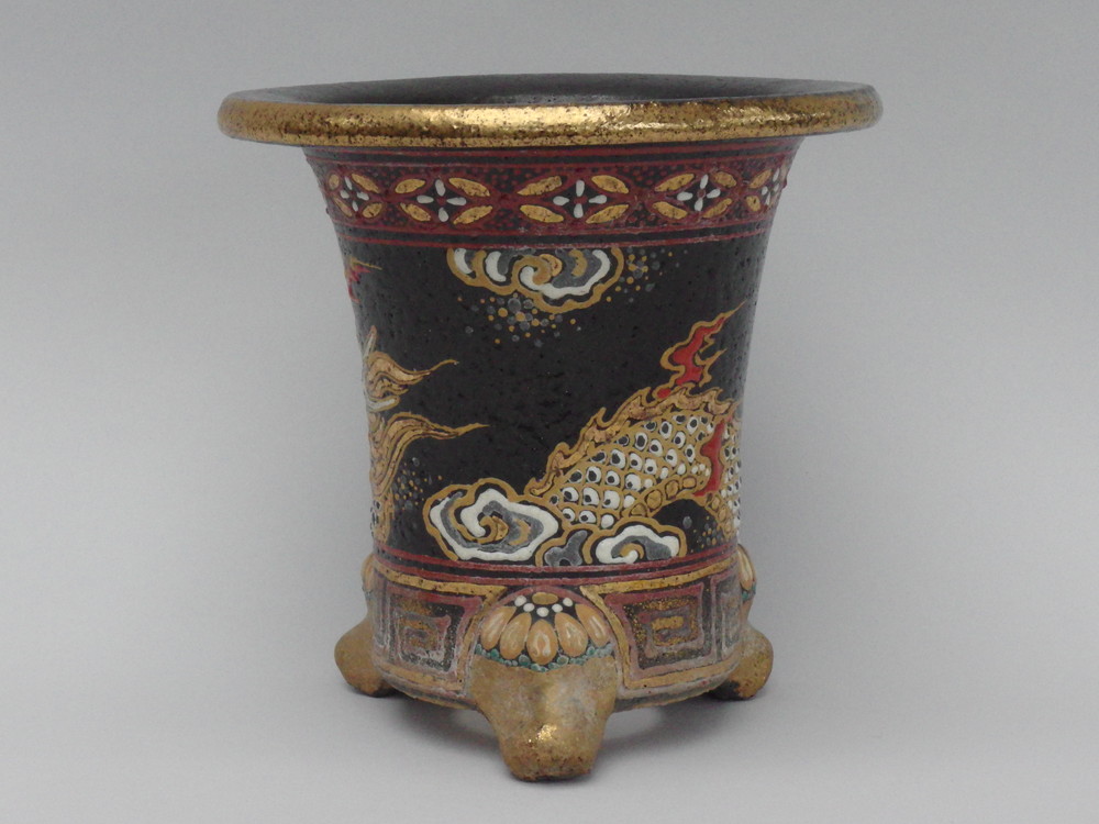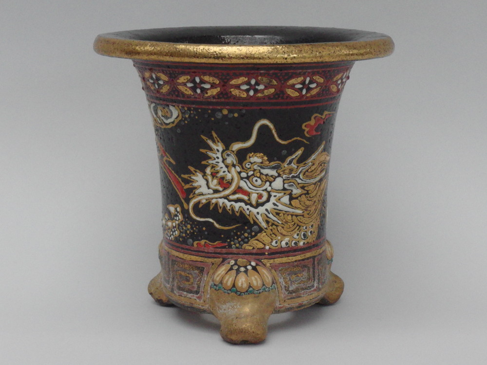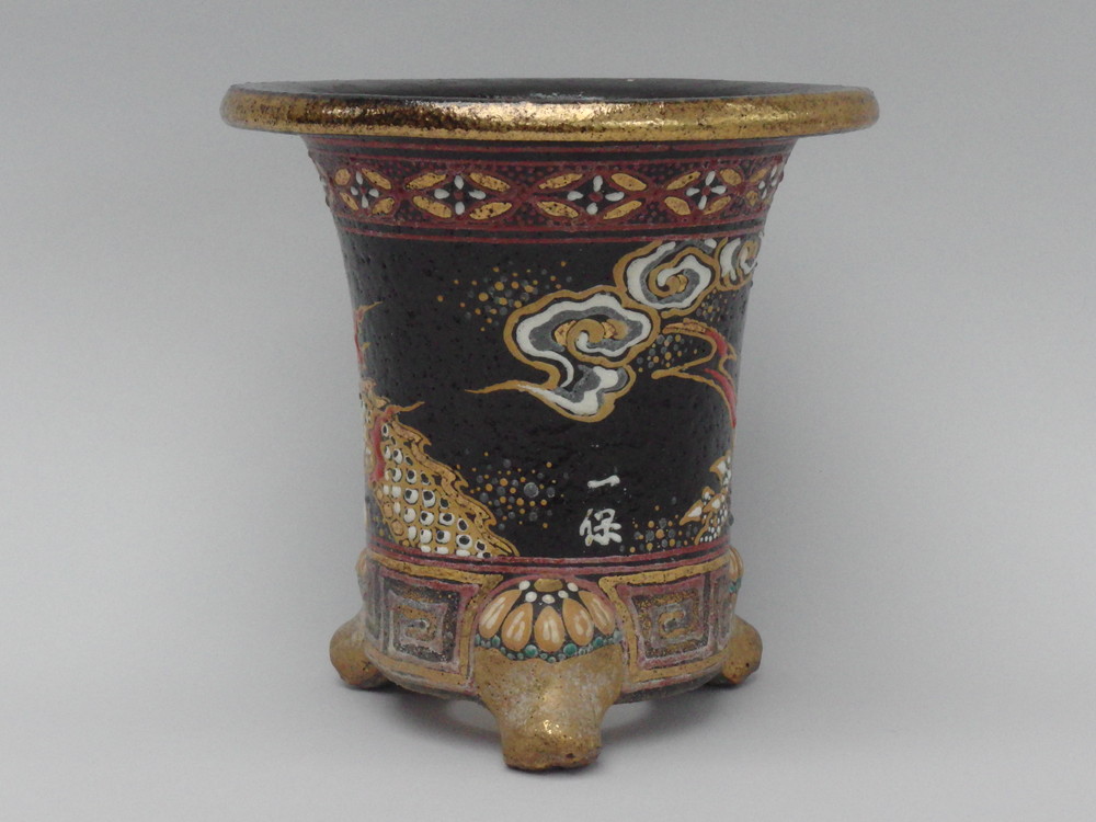 4600,雷龍万年青楽鉢 外形約16.1cm 一保絵 古い鉢