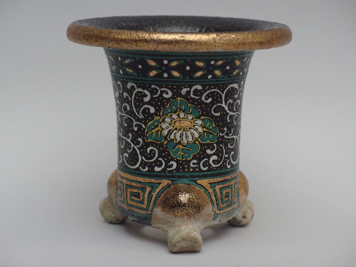 2066, 華唐草 萬年青楽鉢 外形約11cm 中古