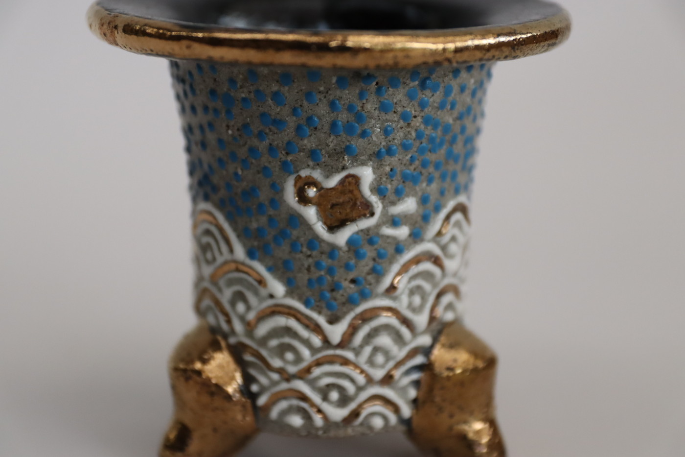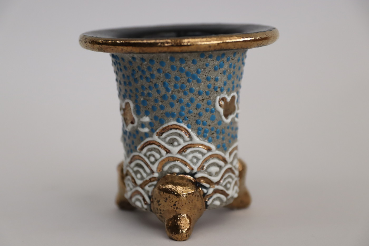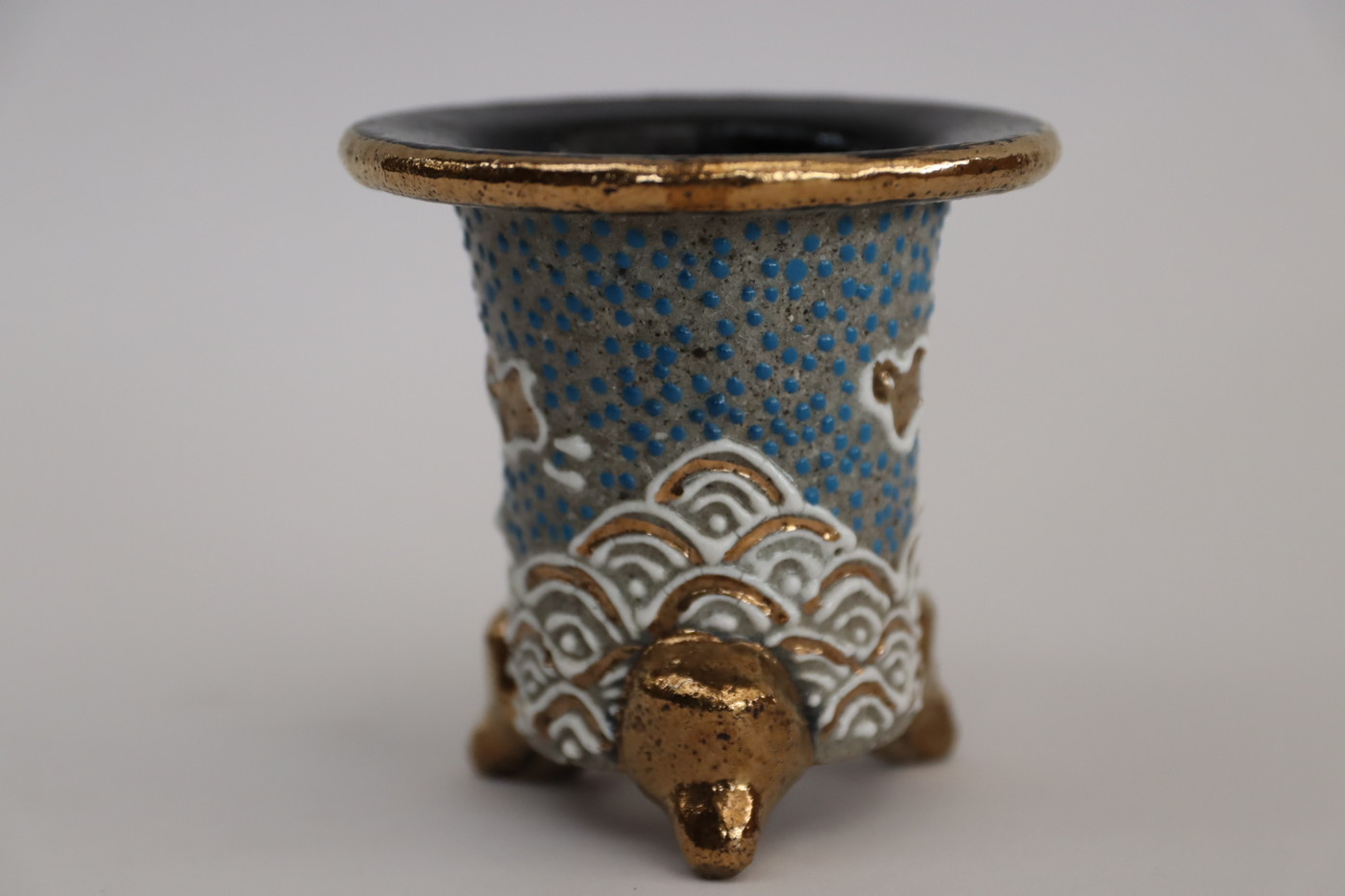 2101,手島風イッチン波千鳥 楽鉢 外径約7.8cm 中古?新古?