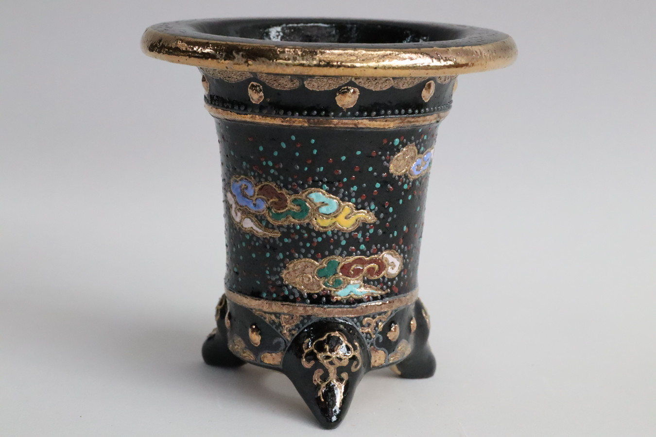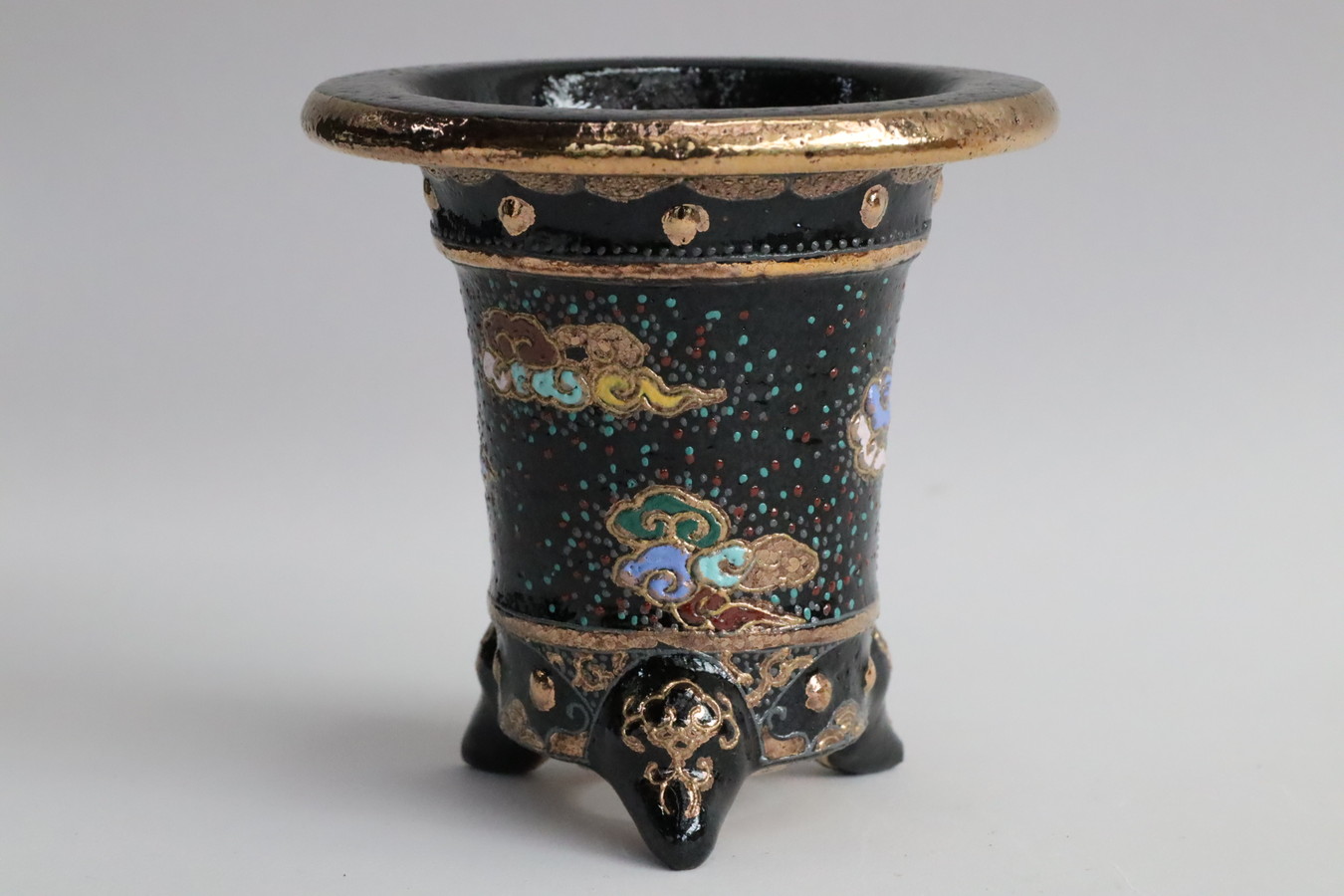 2108,金太鼓 瑞雲 万年青楽鉢 外径約10.3cm 亘・華サイン 品ある作品