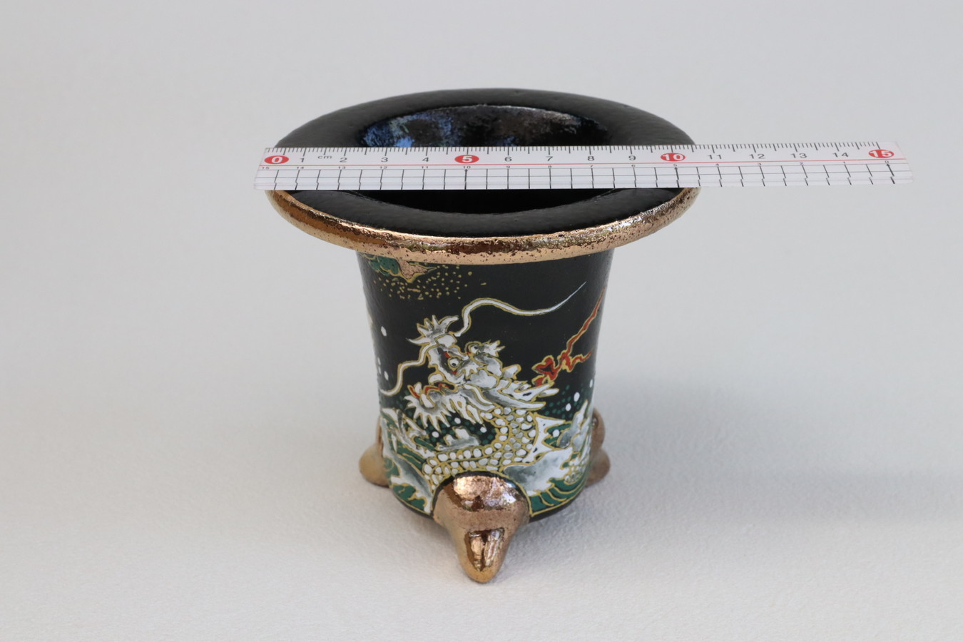 2107,海龍 万年青楽鉢 外径約10.9cm 亘サイン 縁起よい図案