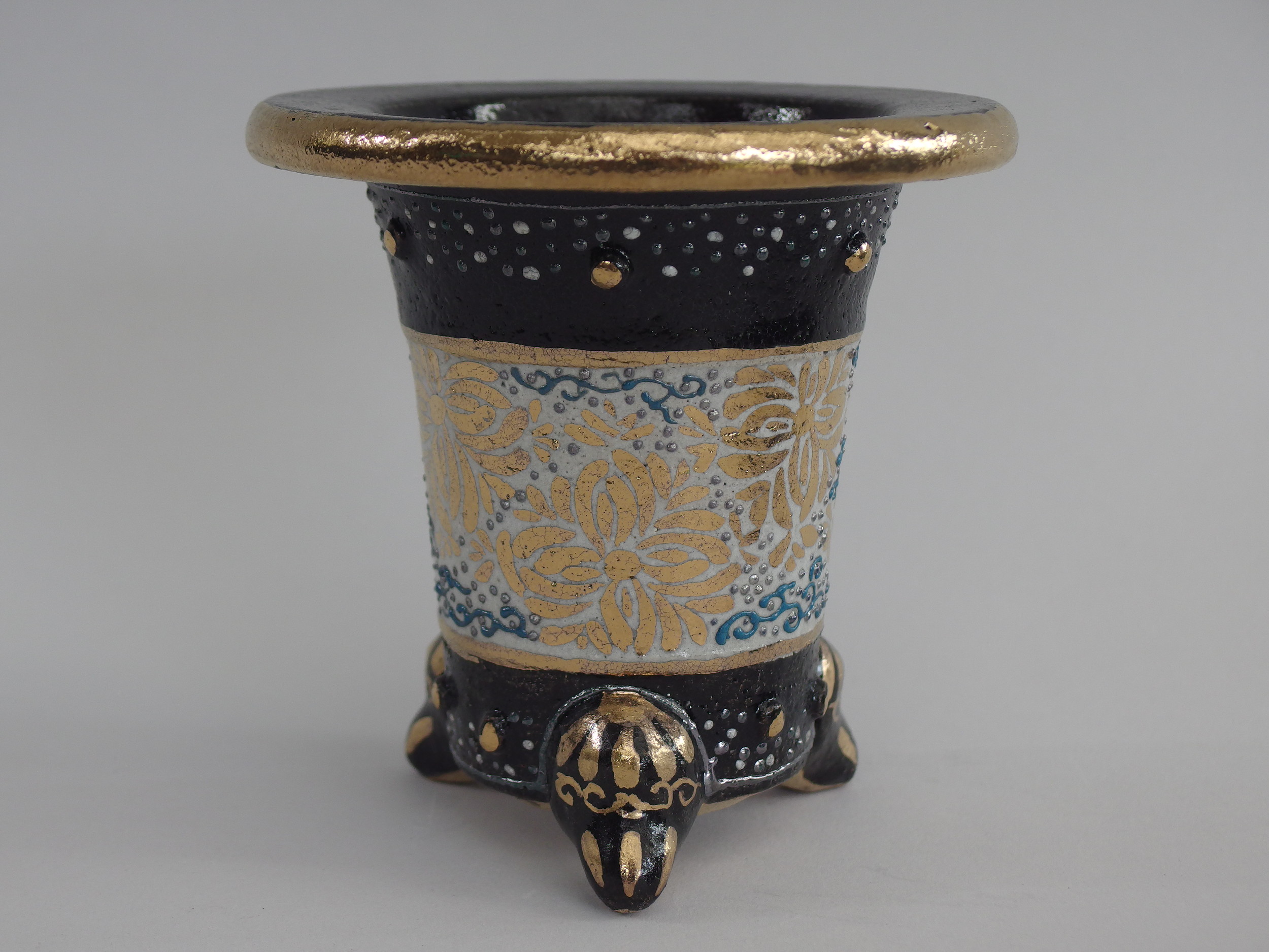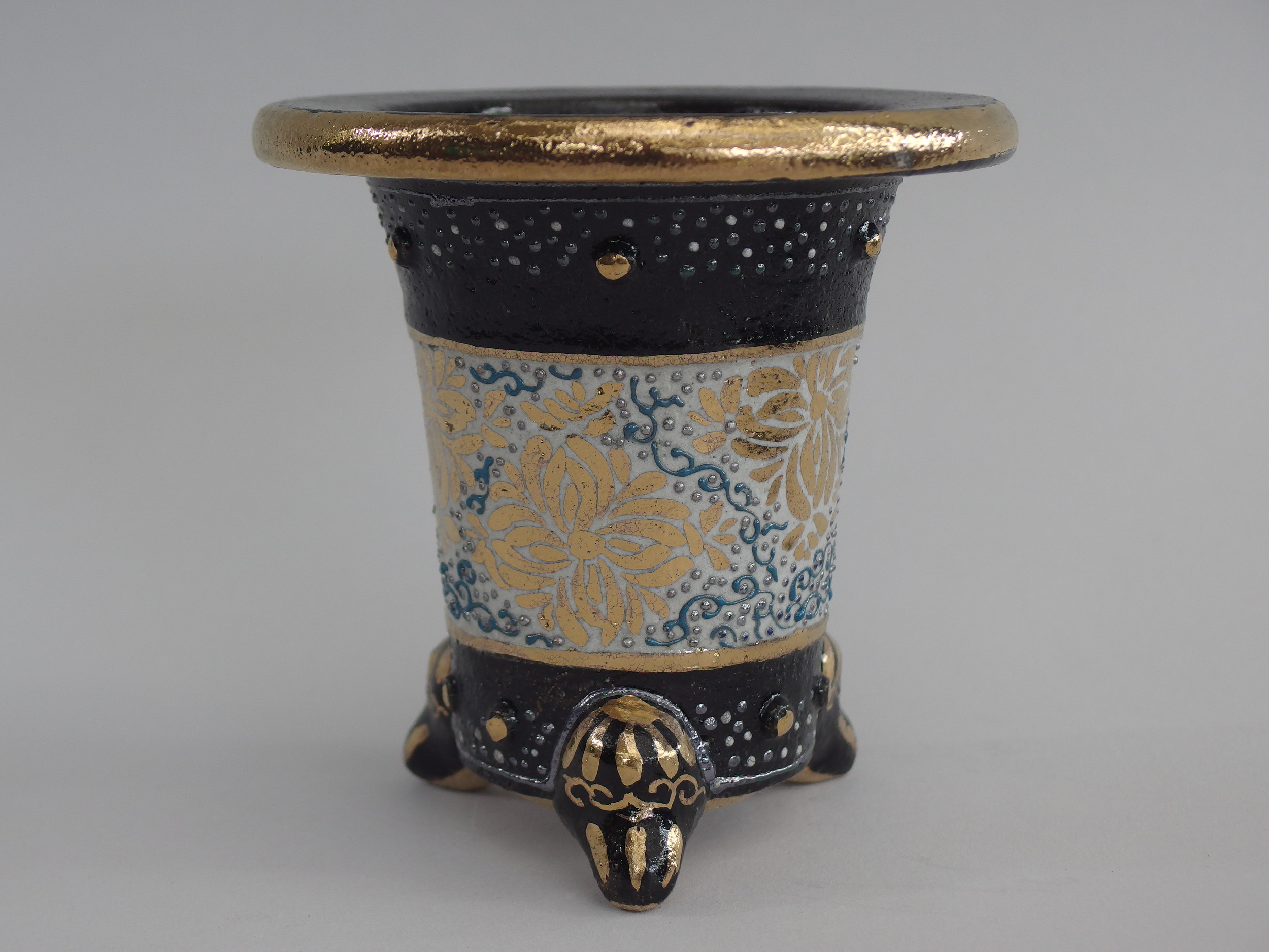 2251,五龍太鼓 外径約9.4㎝ 華,加茂黒サイン 最高傑作か