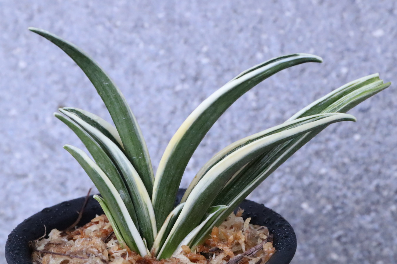 晃明殿の実生で、その素晴らしい総雅糸竜と、きりりとした葉姿を受け継いでいる。晃明殿の素晴らしさをそのまま羅紗おもとにしたような凛々しさあふれる品種。