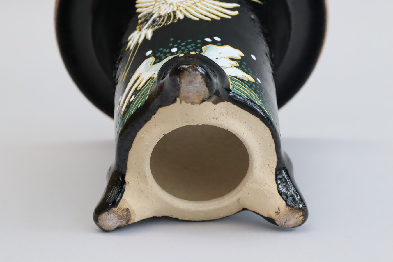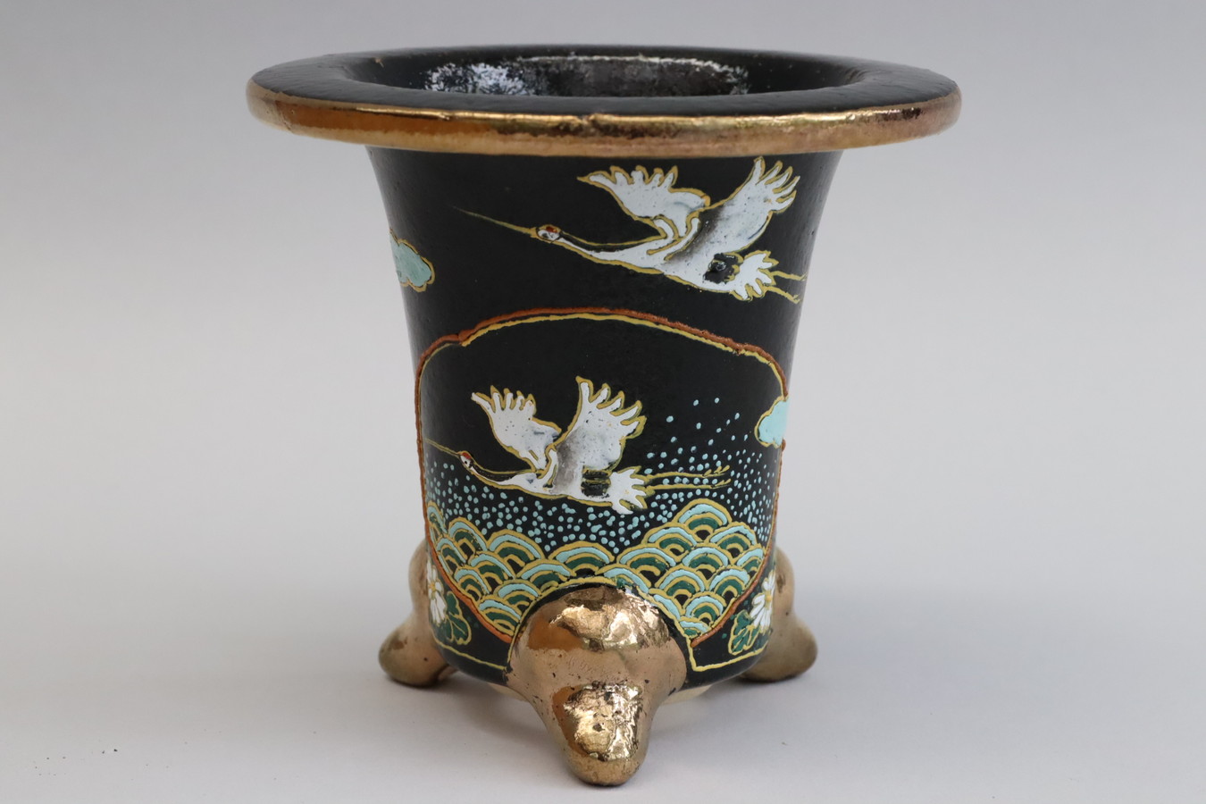 2469,鶴 外径約10.8cm 黒地に浮かび上がるような美しい鶴、縁起よい 運気上がる鶴