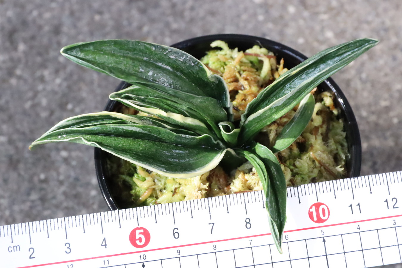 厚みと、堅さのある濃緑色の葉に覆輪、甲竜、熨斗葉を現す入門品。時に雅糸竜もみせる。親木になっても紺性を強く残すことで、特に丈夫な中型種。葉はどれも全く違った変化のある芸をみせ、作る人それぞれのユニークな完成木となる。採光、肥料も強く、芋吹きが主。子上げもし殖えも良い。初心者がまず手にする羅紗品種。
