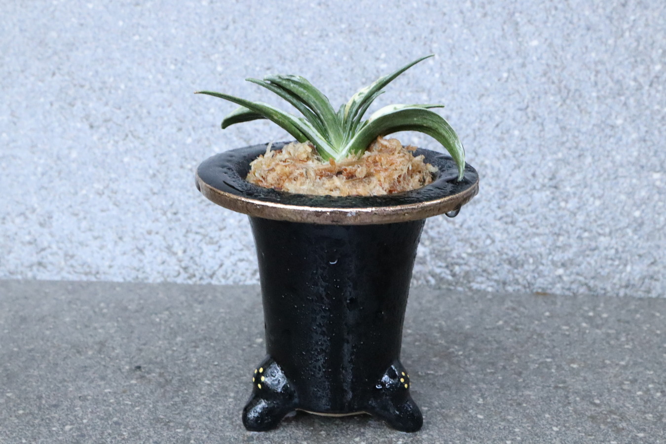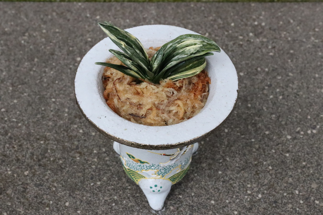 鉢は縁起の良い【鶴:長寿、円満】【波:永遠に良いことが続く】の鉢に植えて