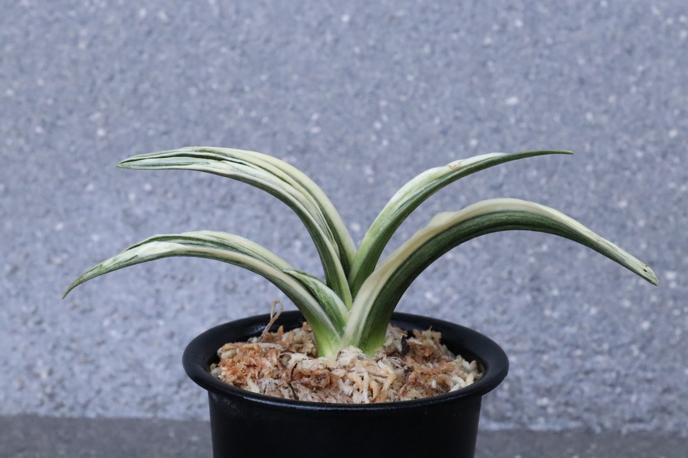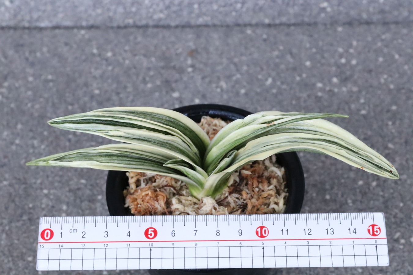 胡麻斑系の中型種。中立ち葉のバランスの良い葉姿に、鮮明な胡麻斑が美しく、深い白覆輪と見事に調和し、胡麻羅紗の魅力を最大限に生かした代表品種。低い雅糸竜に甲竜、跳ね竜、玉竜などの葉芸は多彩である。性質は普通で、子上げが良く、繁殖は良い。採光は、やや強めにするほうが胡麻斑が鮮明になり、葉芸も強くなる。施肥は中程度が良い。