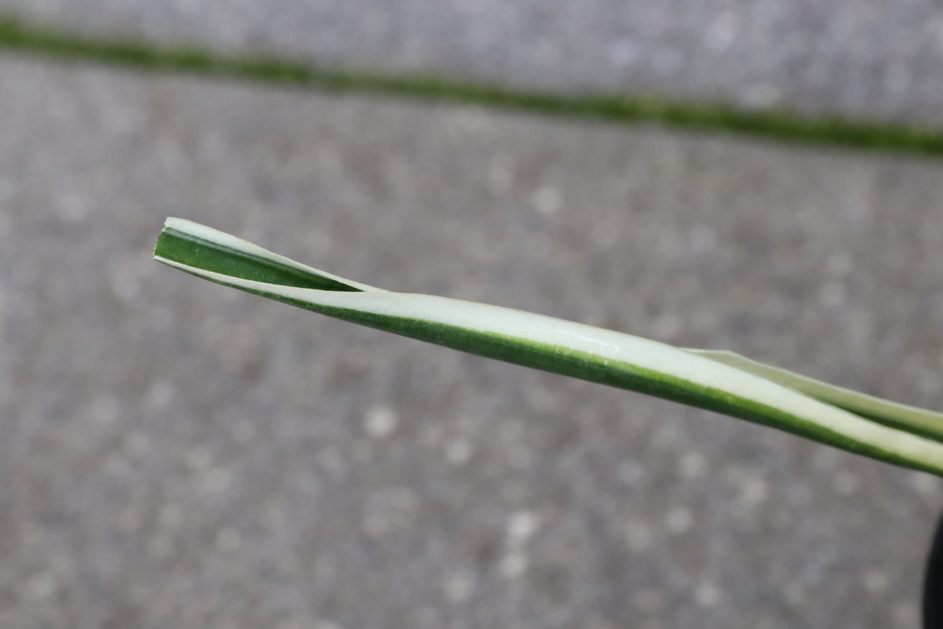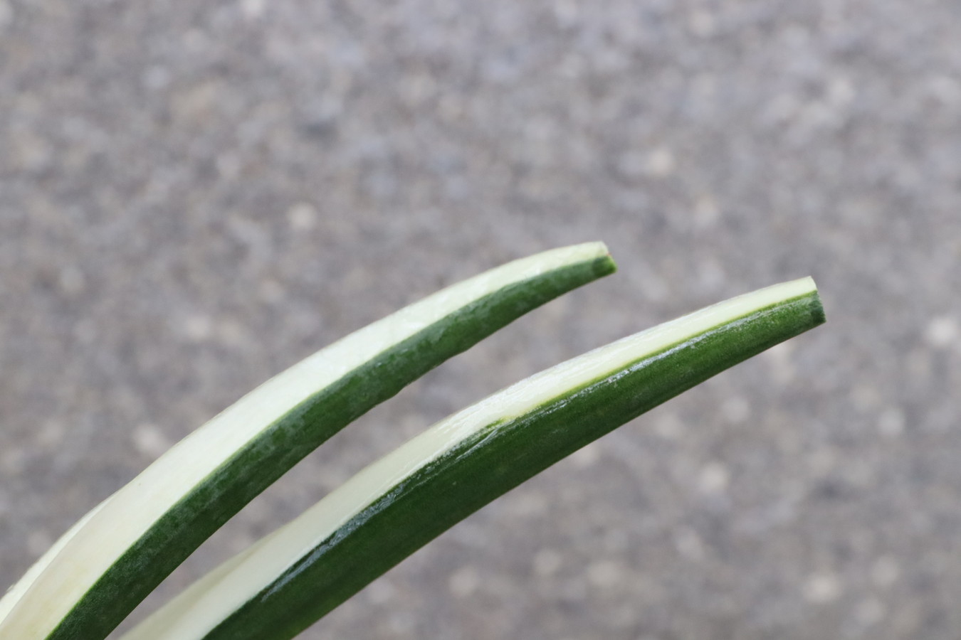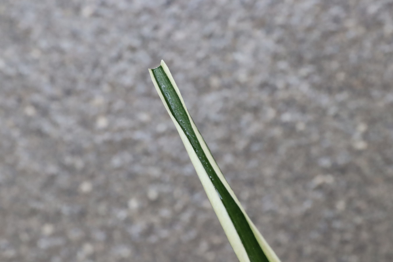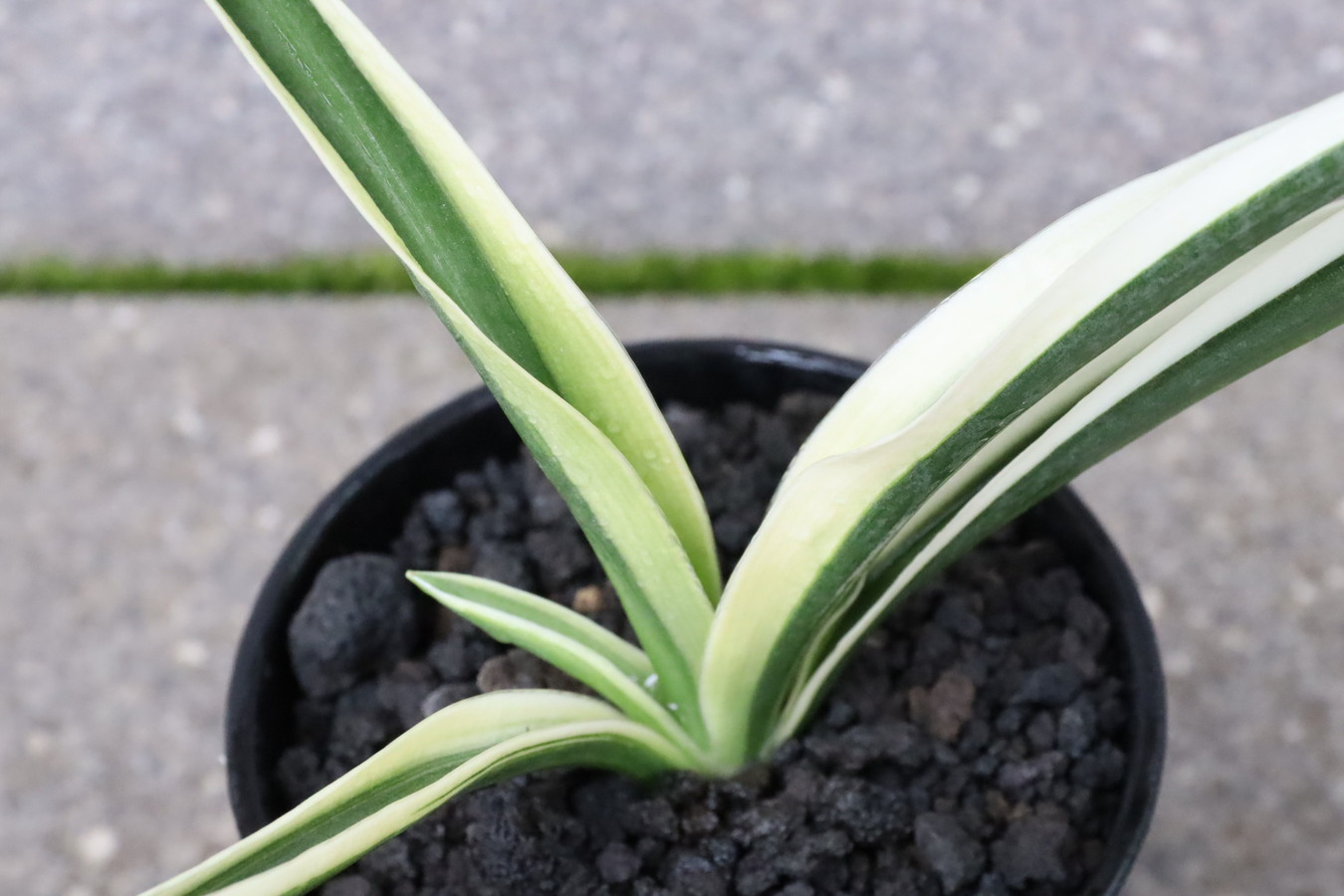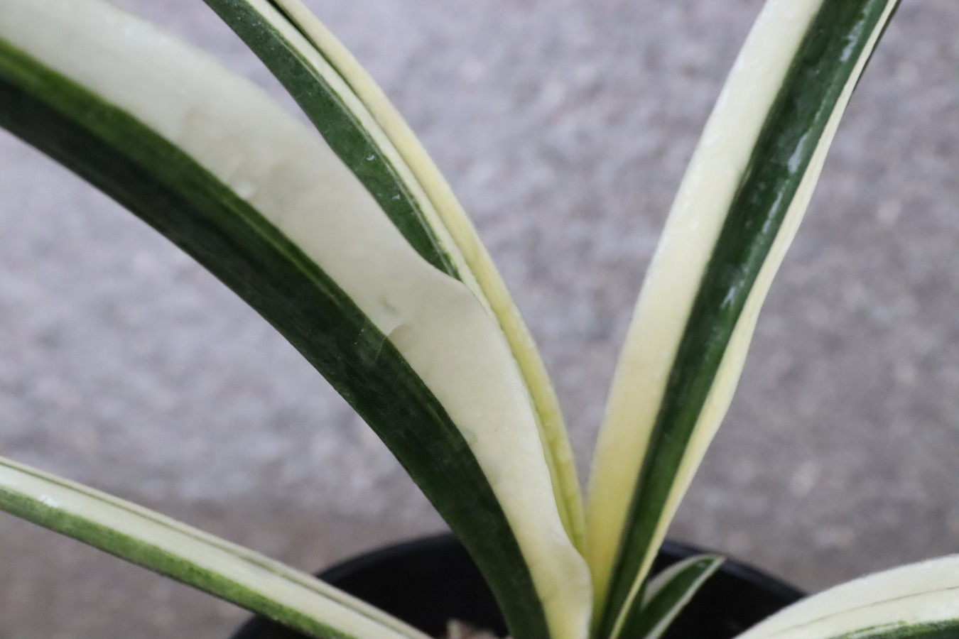 濃緑色の葉に深い覆輪を見せる品種