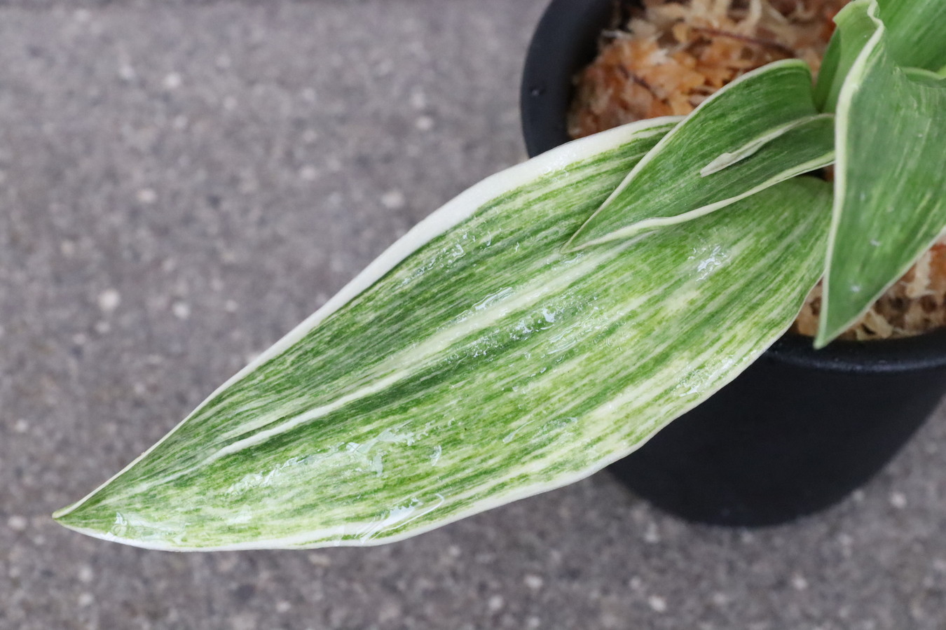 葉全体にゴマ斑がのり、斑がきらきらと光る