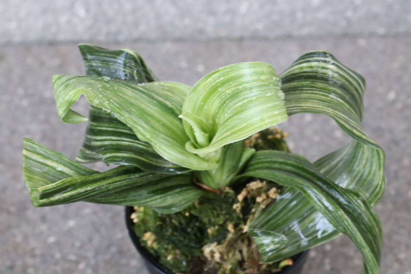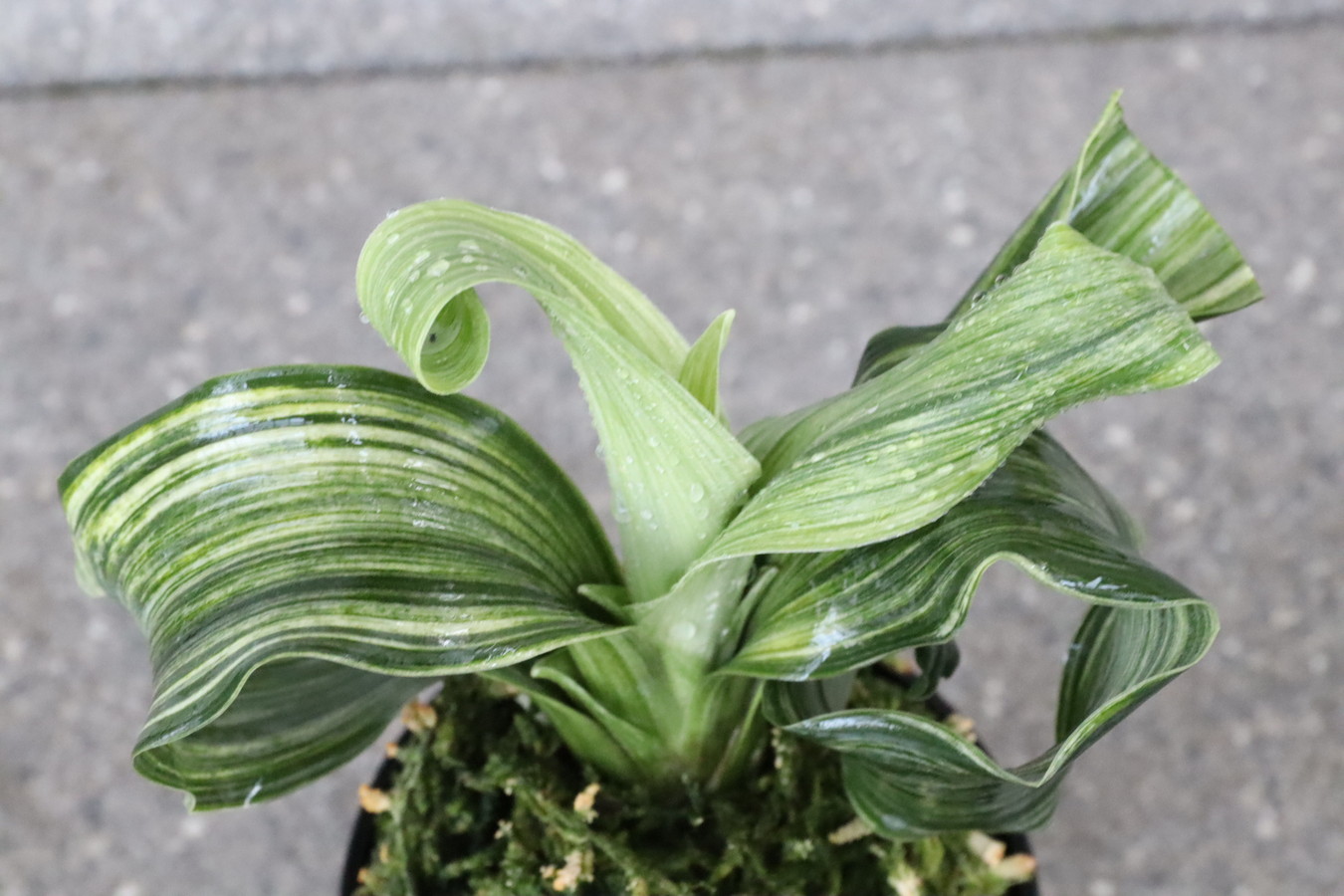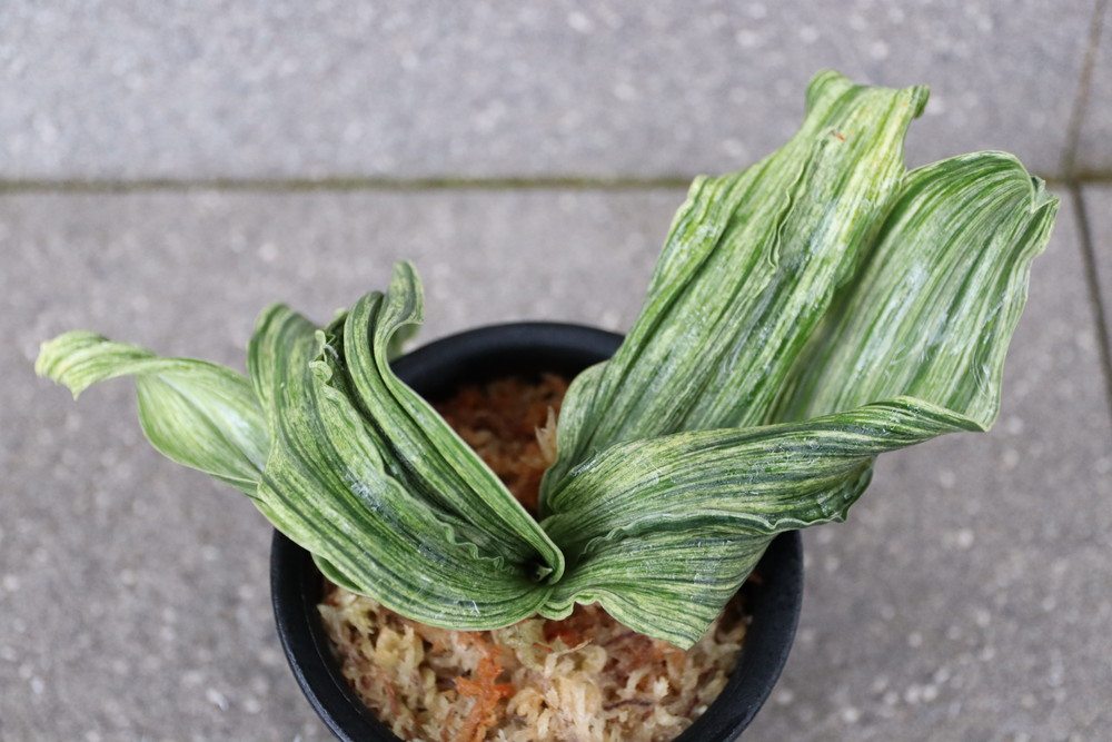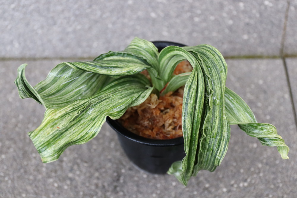 濃緑色の葉に美しい斑をみせる珍しい獅子