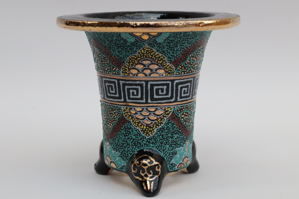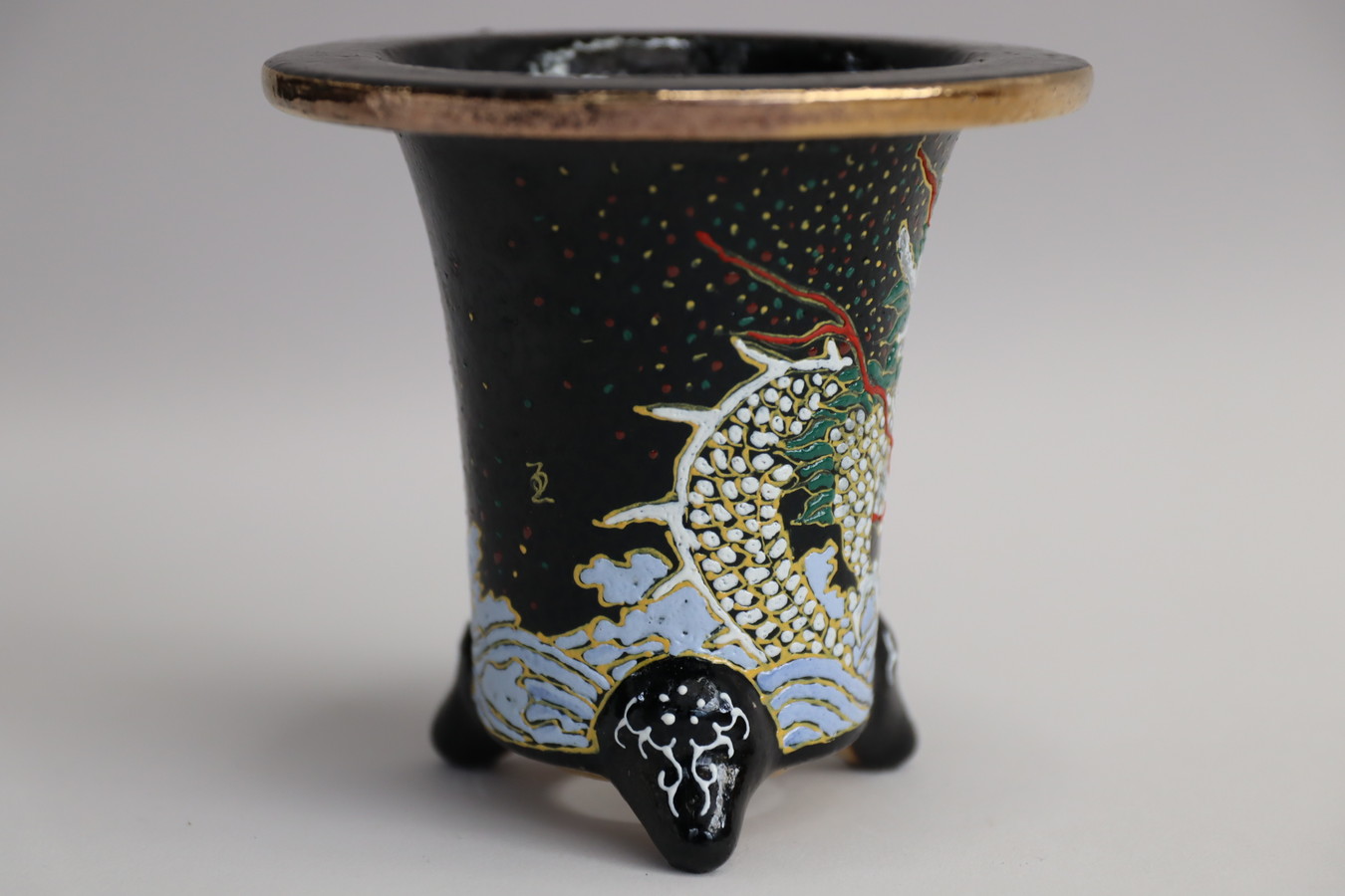 2593,海龍 楽鉢 外径約10.3cm 亘サイン 作よい