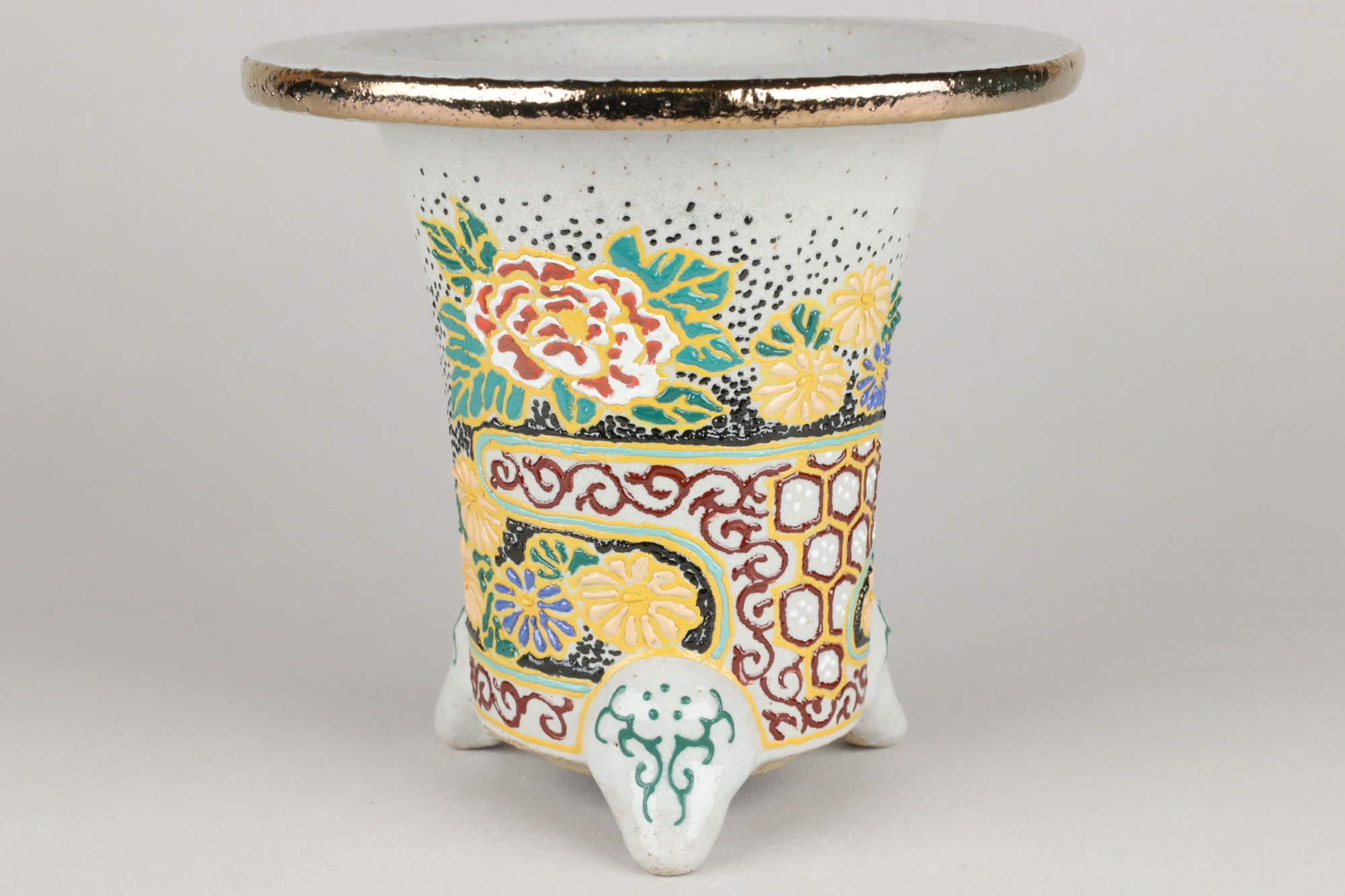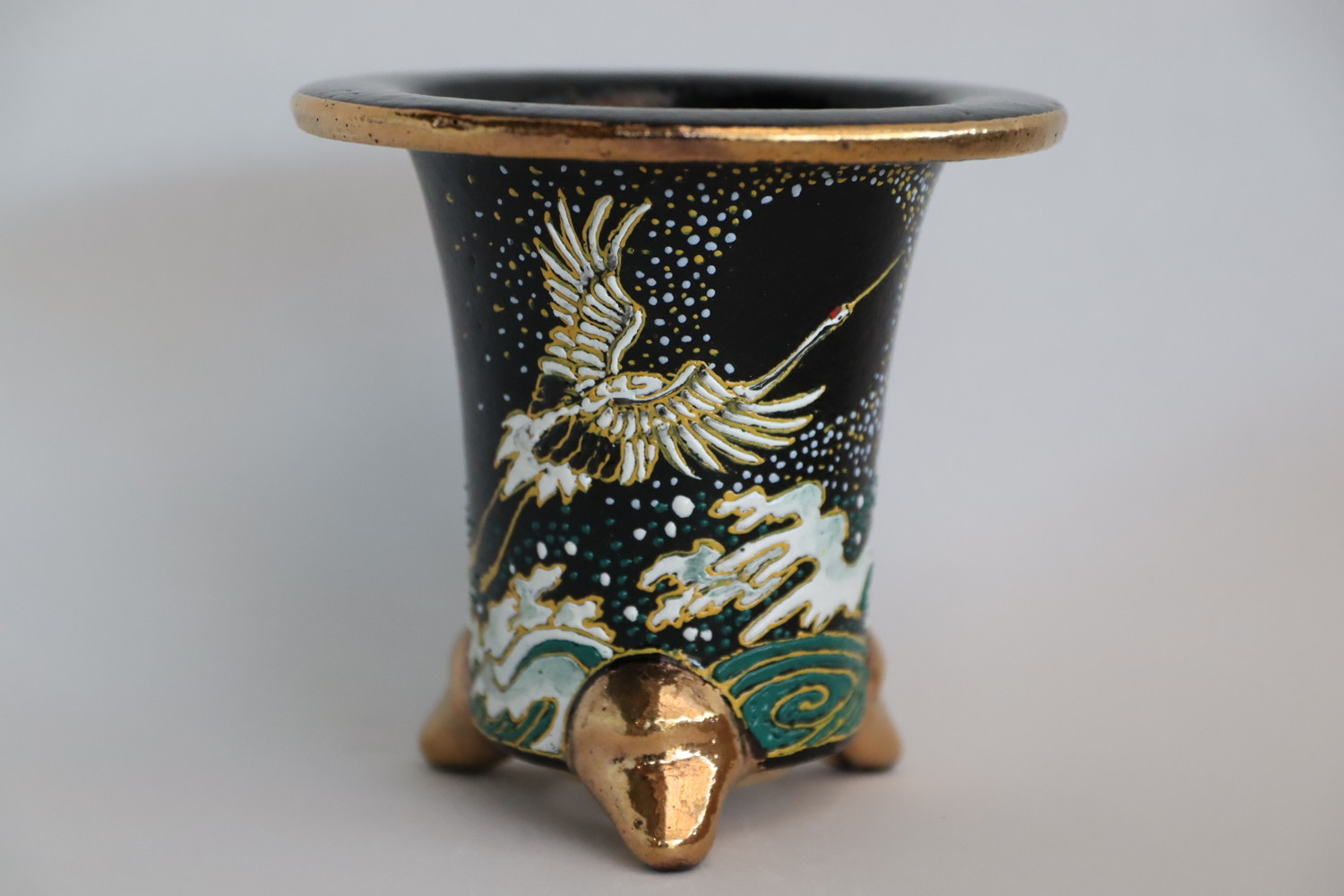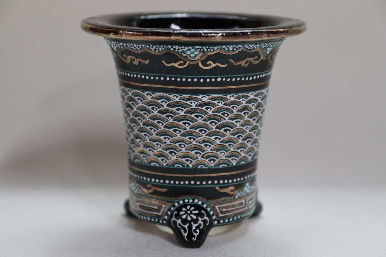 これ以上の作ない、青海波の精緻な色重ね。青海波のような幾何文様は、細かくすればするほど、倍どころか、10倍づつ時間がかかるといわれる。今まで萬年青鉢で誰も見たことがない領域にいっている。