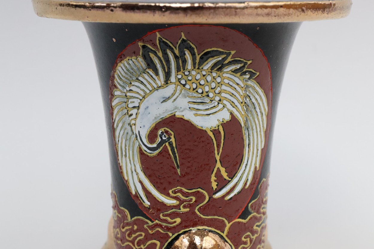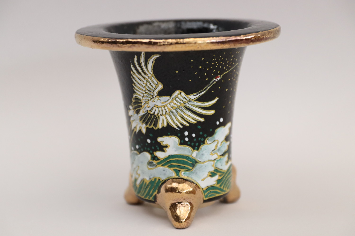 2618,鶴 万年青鉢 外径約10.4cm 亘サイン 新鉢
