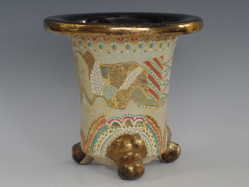 4730,幾何学模様万年青楽鉢 外形約14cm 古い鉢