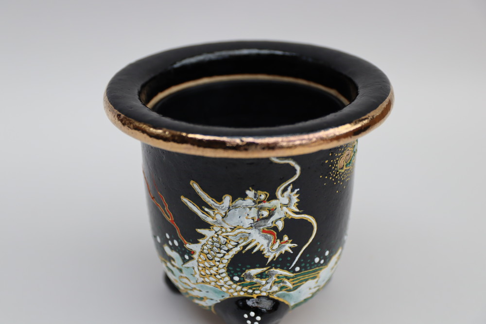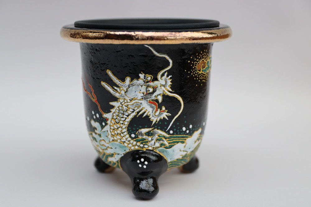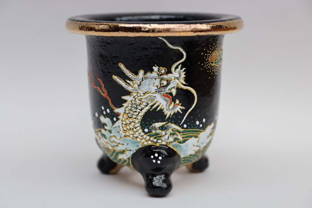 代々お付き合いのある窯元と試作を重ねてきましたが、焼き物の特性上、寸法は土、季節、その日の天気、湿度によっても変わり、自然に大きく左右されます。本当に腕がある作家さんがやってもこの寸法は時の運で、普段の鉢製作と比べてもロスは大幅に出てきます。それでも、この錦鉢で万年青を楽しむのは徳川家康公が万年青を楽しむ以前からと言われています。そんな日本の万年青の楽しみを是非多くの人に味わっていただきたく、なんとかここまで漕ぎ着けました。手に取っていただいて、万年青と錦鉢を楽しんでください。