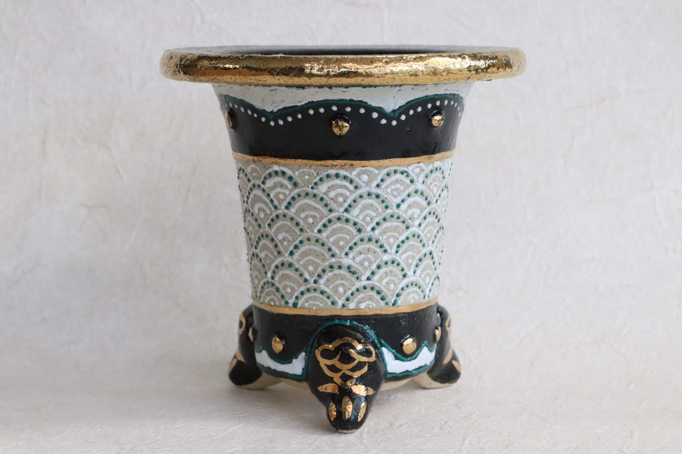 一点物中古鉢 古鉢は古いもの、使ってあるものなので、状態がさまざまです。 小さなキズ、入、汚れ、ホツあります。楽焼は天正年間(約400年前)に始まる日本独特の焼き物です。楽焼は《急熱急冷》という特殊な焼成方法をとります。急熱急冷だから、鉢に細かな 微細な穴ができ、通気を良くしています。おもと鉢 楽鉢 楽鉢の樂しみ絵付け師 布施覚