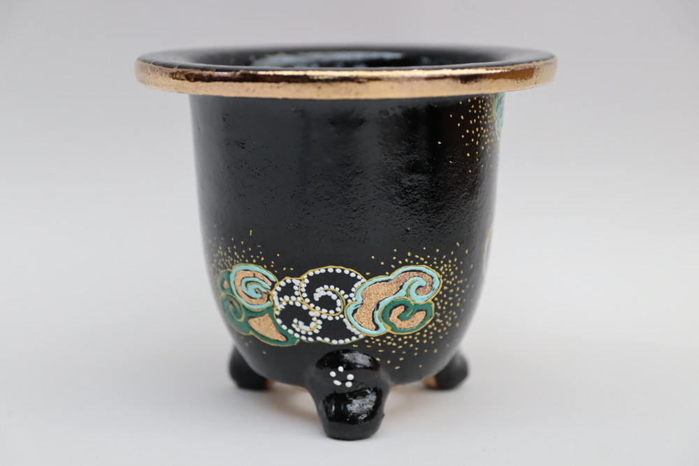 代々お付き合いのある窯元と試作を重ねてきましたが、焼き物の特性上、寸法は土、季節、その日の天気、湿度によっても変わり、自然に大きく左右されます。本当に腕がある作家さんがやってもこの寸法は時の運で、普段の鉢製作と比べてもロスは大幅に出てきます。それでも、この錦鉢で万年青を楽しむのは徳川家康公が万年青を楽しむ以前からと言われています。そんな日本の万年青の楽しみを是非多くの人に味わっていただきたく、なんとかここまで漕ぎ着けました。手に取っていただいて、万年青と錦鉢を楽しんでください。おもと鉢 大きさ