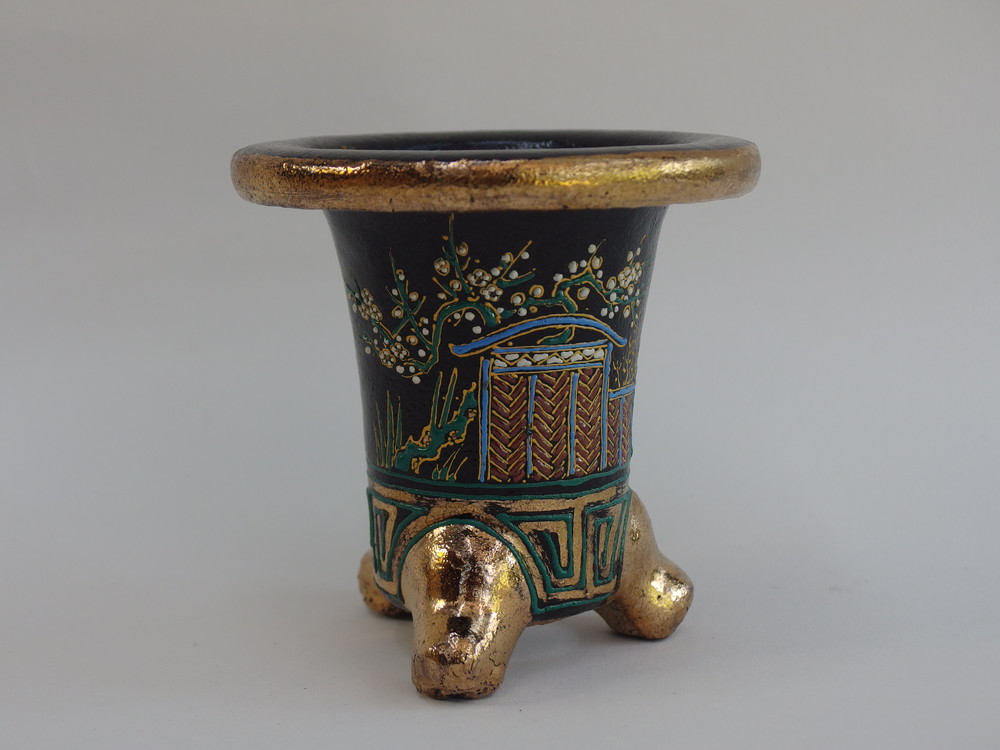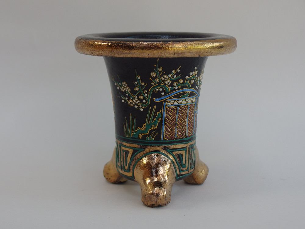 2629,龍山の老梅 錦鉢 外形約10.8cm 中古 龍山