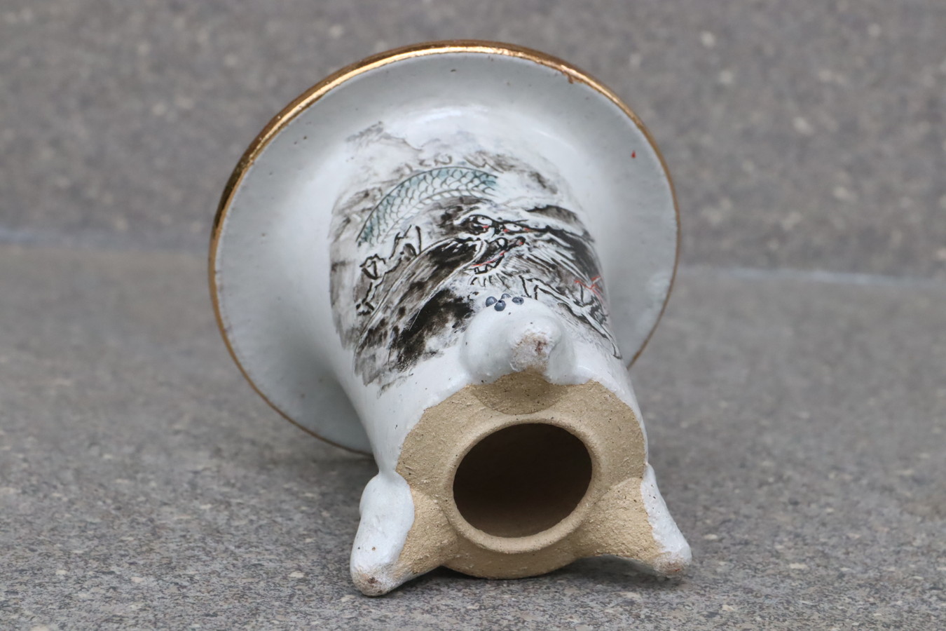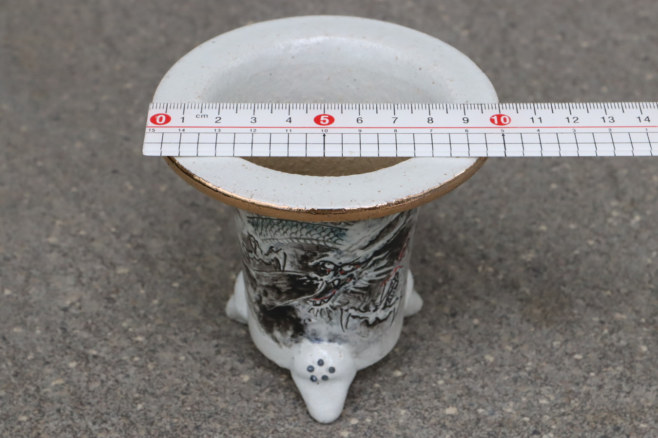 2392,白地 丸墨龍 万年青楽鉢 外径約10.2cm