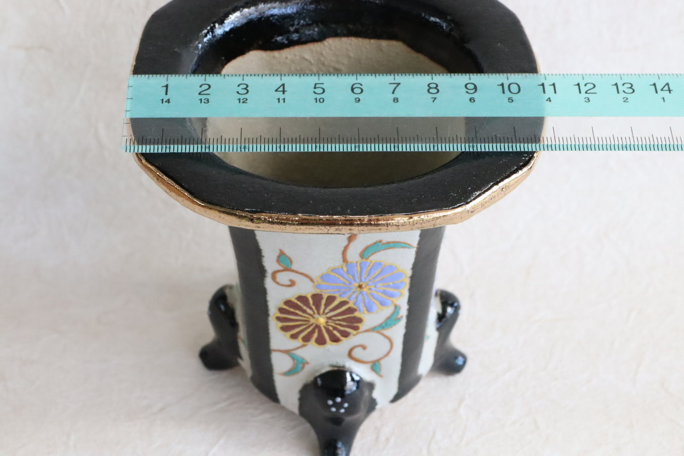 2456,耳飾り 青海波 萬年青楽鉢 外径約10.3㎝ 華サイン【希望価格88000円 作素晴らしい】