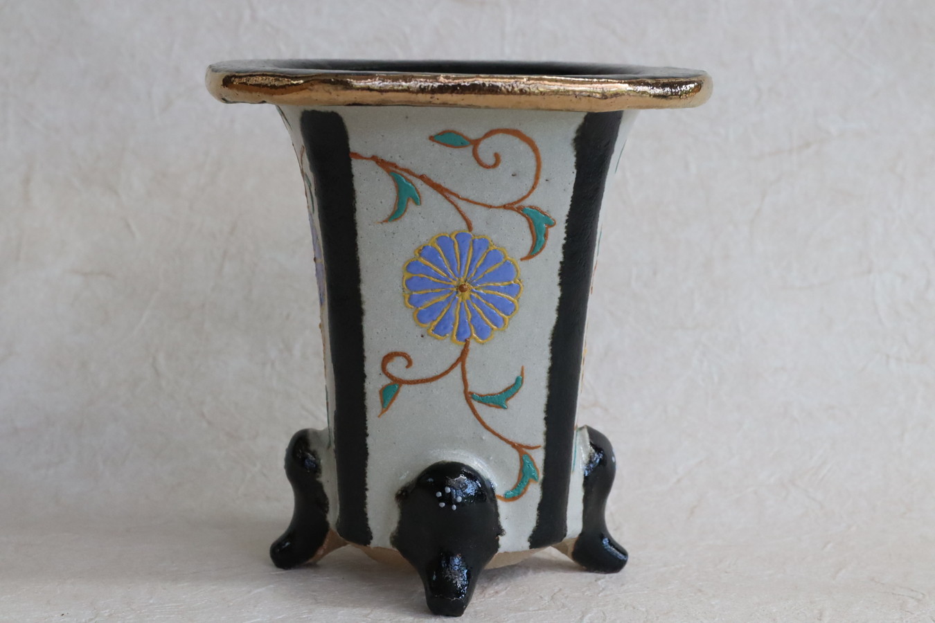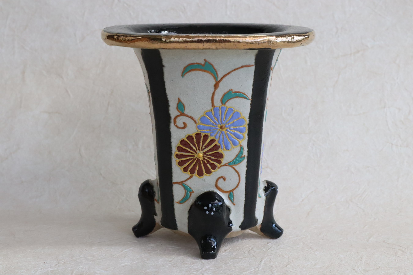 万年青鉢 オモト鉢楽焼は天正年間(約400年前)に始まる日本独特の焼き物です。楽焼は《急熱急冷》という特殊な焼成方法をとります。急熱急冷だから、鉢に細かな 微細な穴ができ、通気を良くしています。おもと鉢 楽鉢 楽鉢の樂しみ