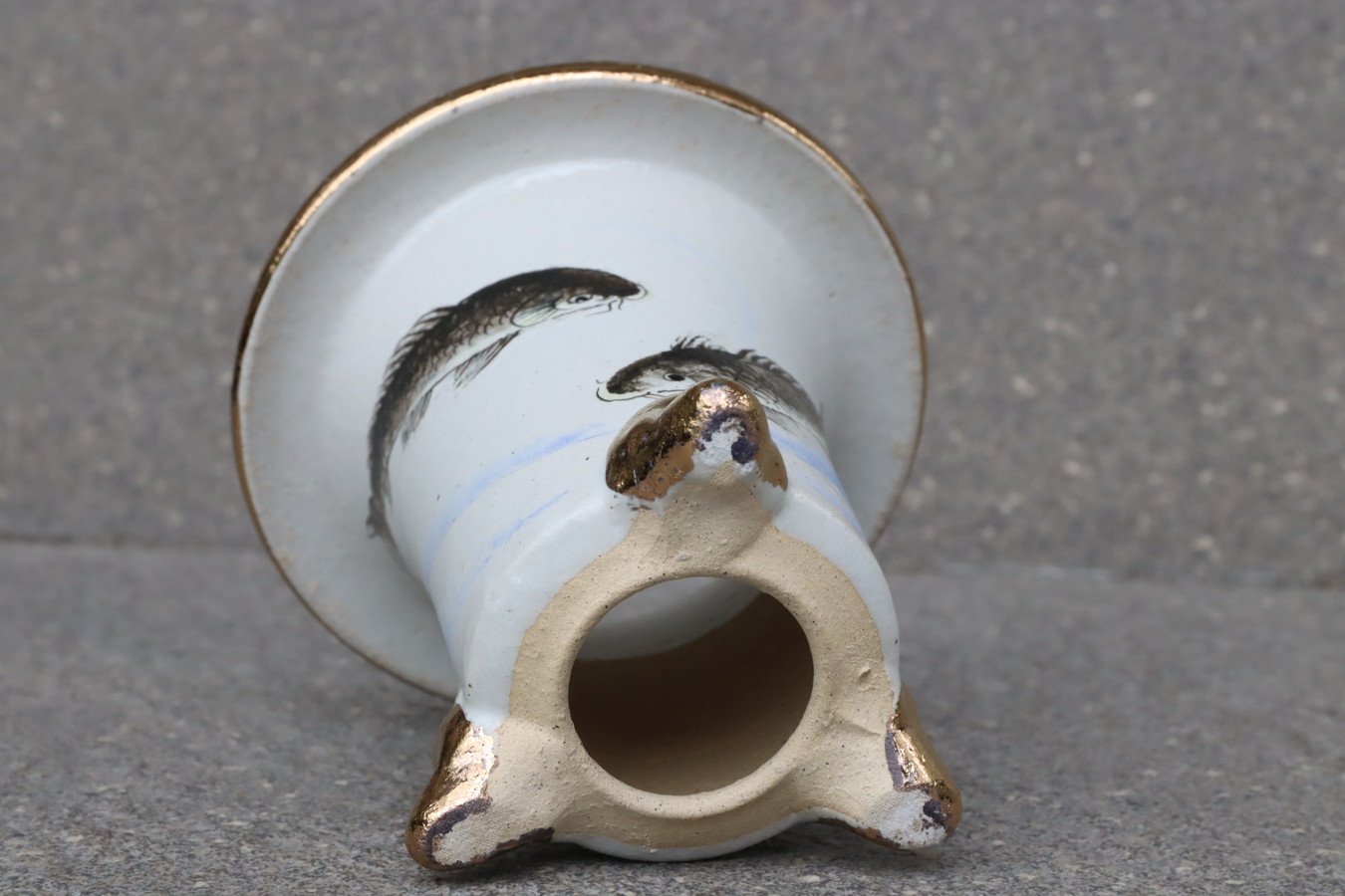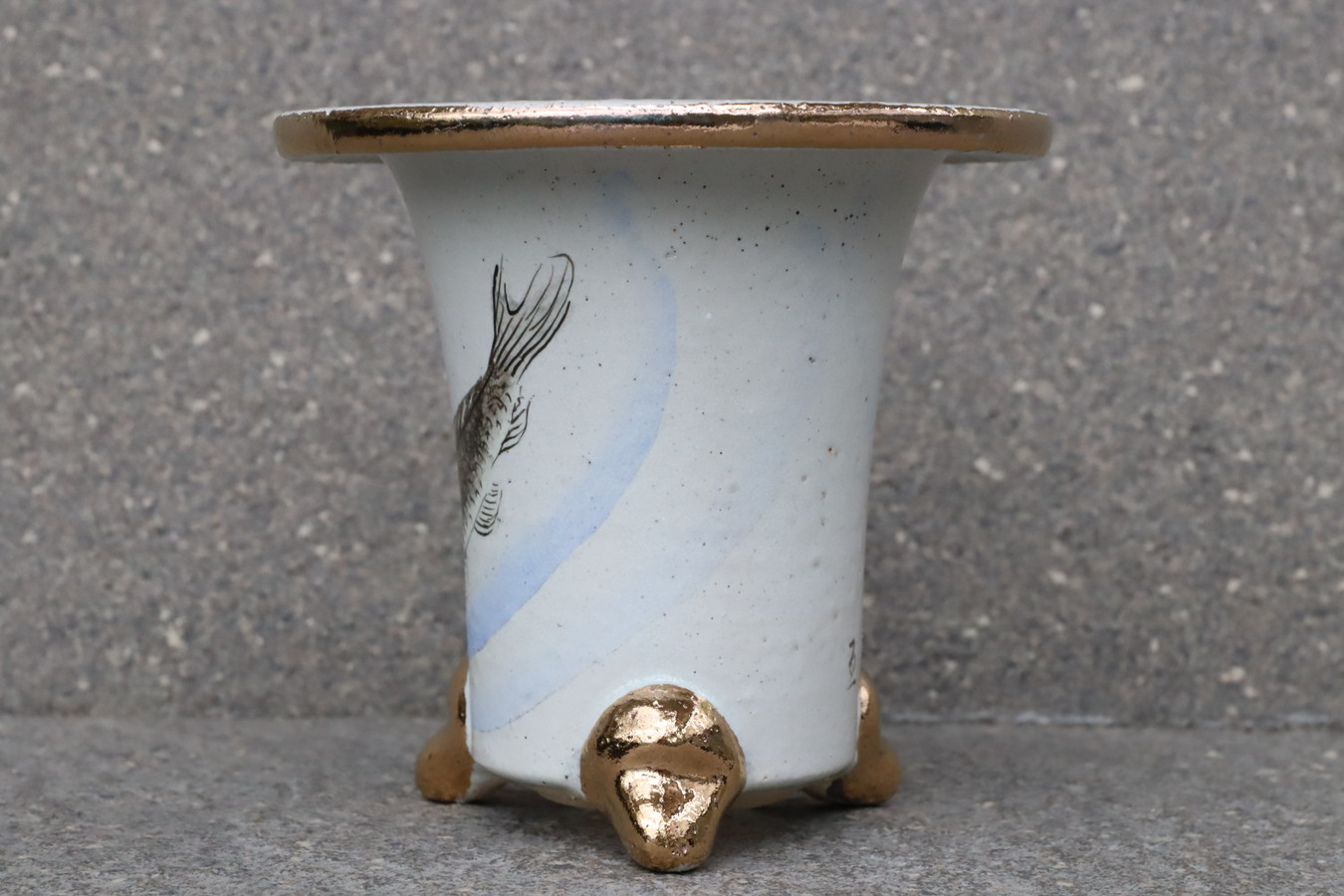 3146, 金白鉢 鯉の滝登り 登龍門 外径約10.8cm 亘サイン 非常に作が良い