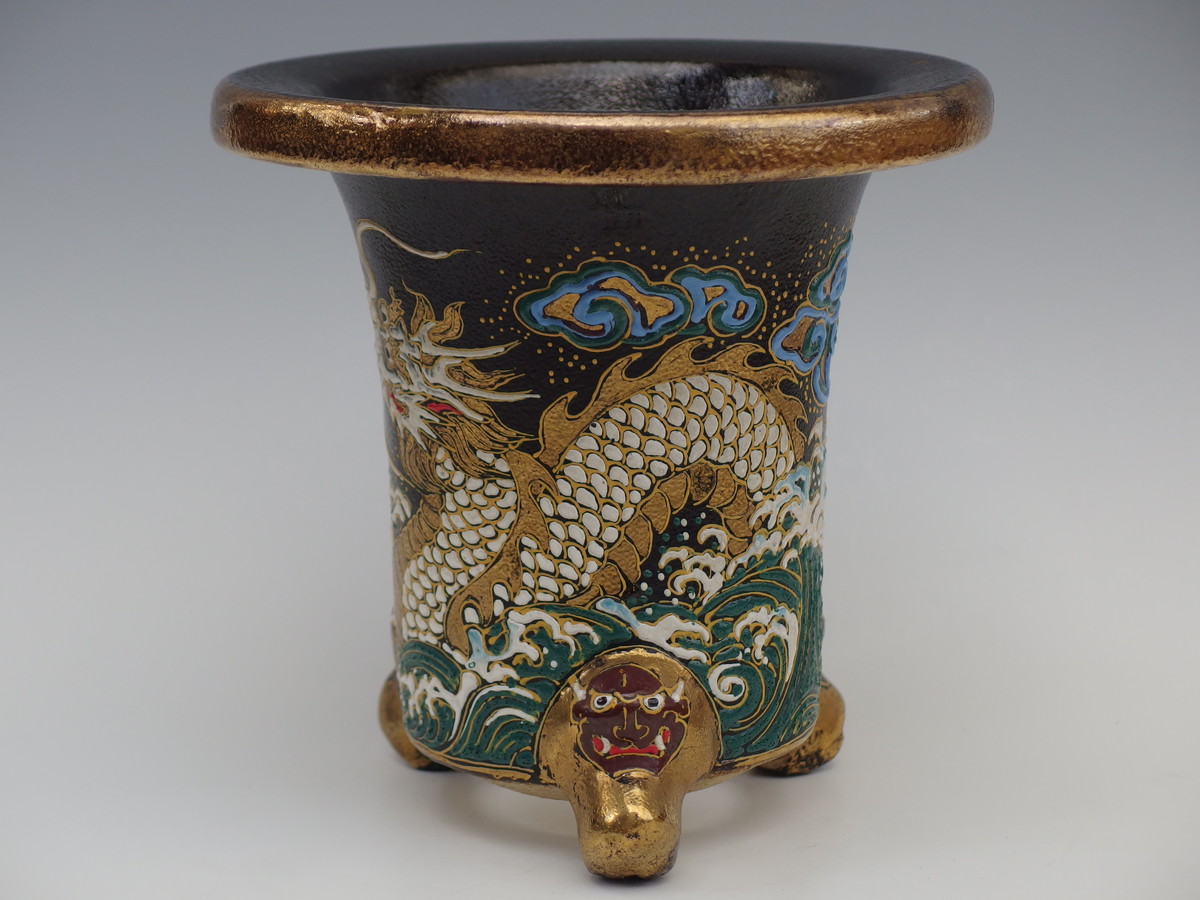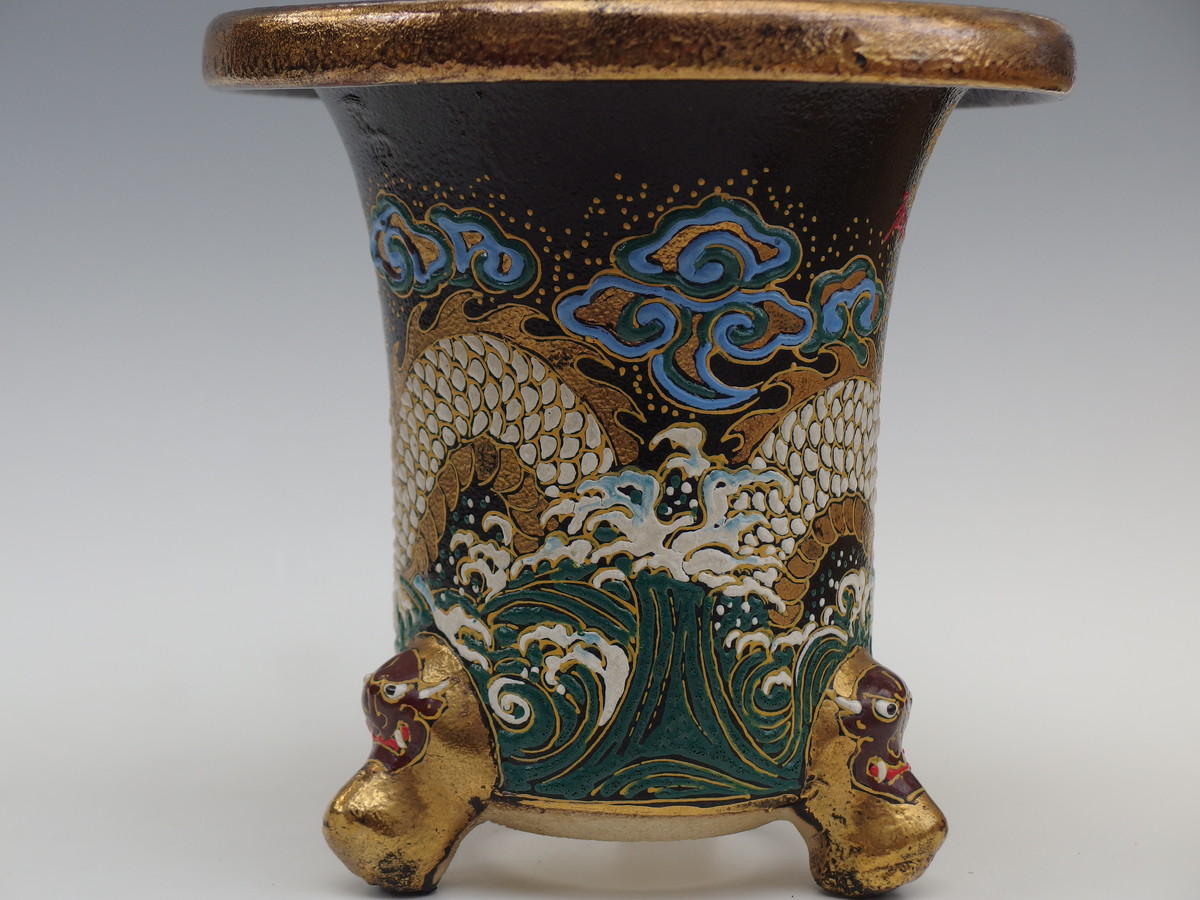 新古品 一点物 楽焼は天正年間(約400年前)に始まる日本独特の焼き物です。 楽焼は《急熱急冷》という特殊な焼成方法をとります。 急熱急冷だから、鉢に細かな 微細な穴ができ、通気を良くしています。 錦鉢 小菊の魅力