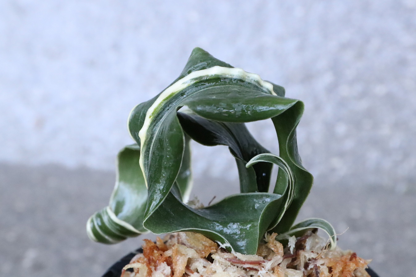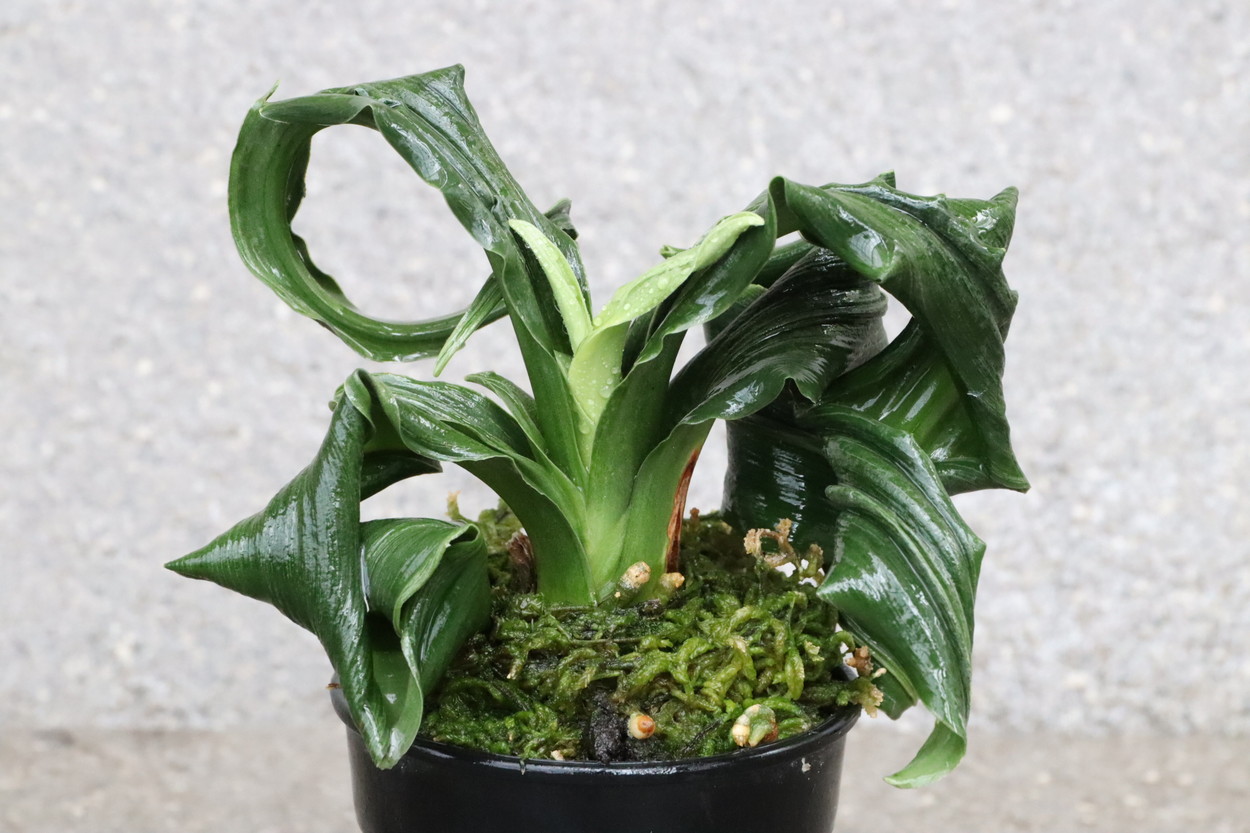 濃緑色の角巻き葉に低い総雅糸竜と二面甲竜をみせる美しい品種。