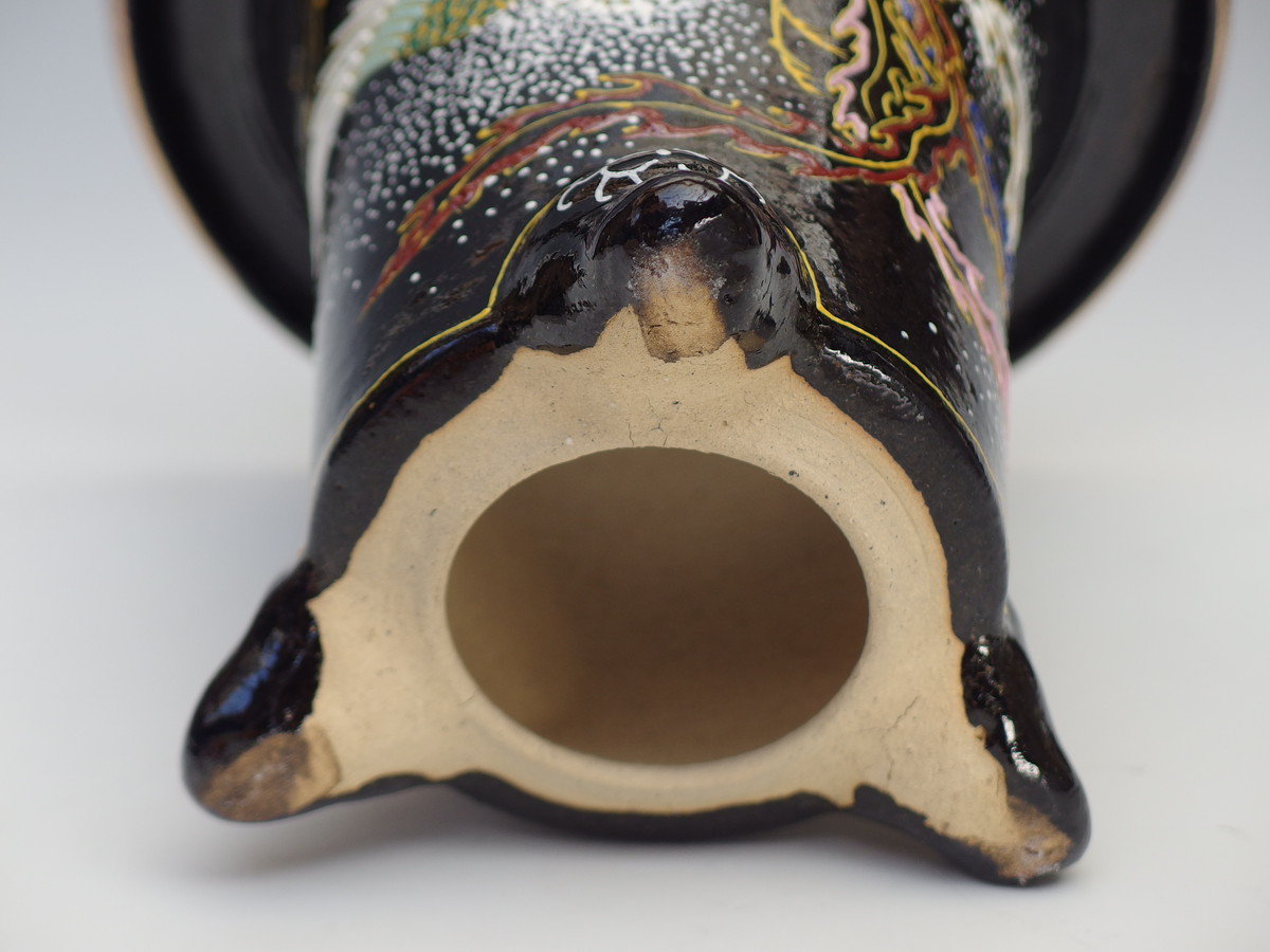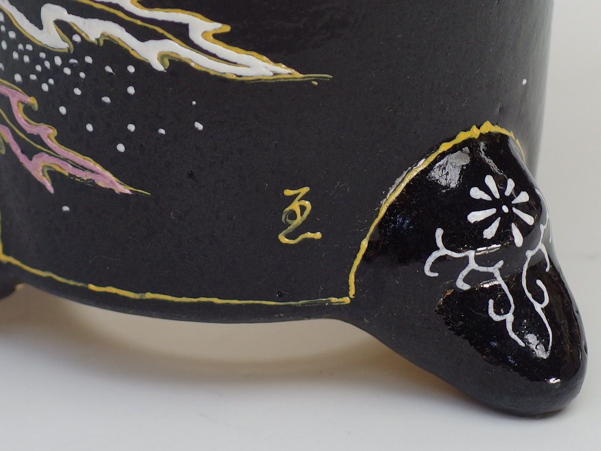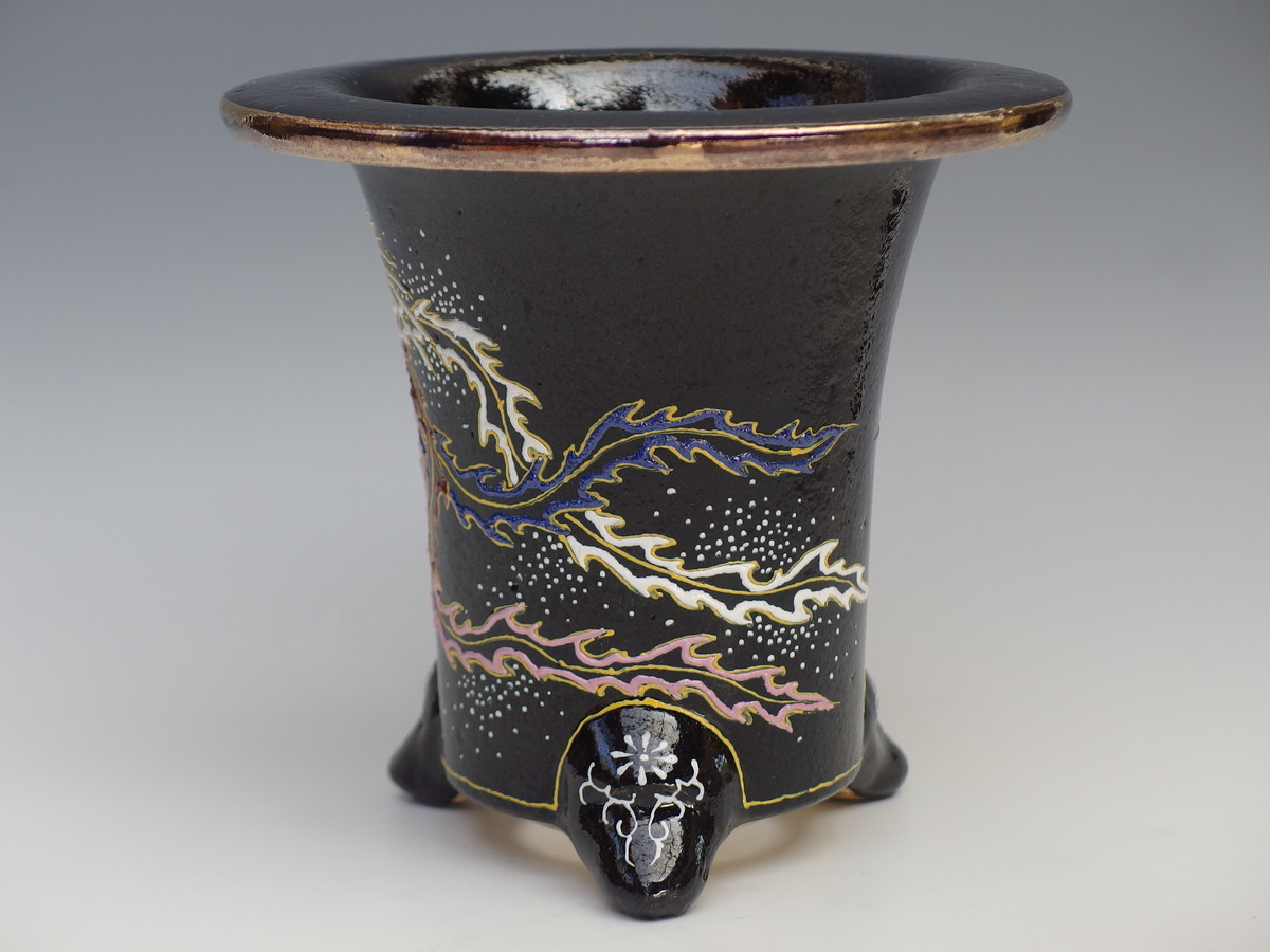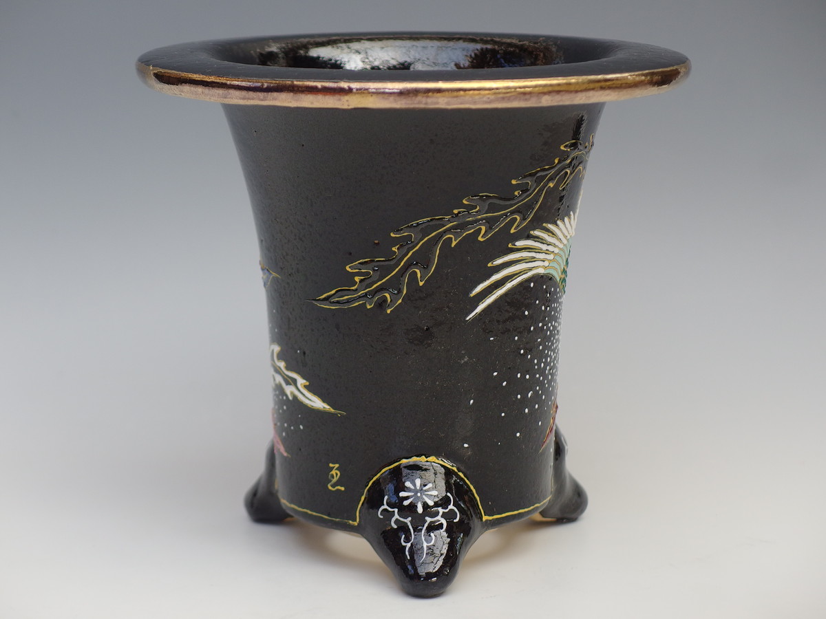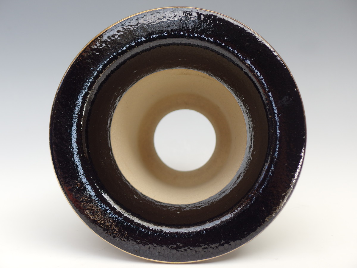 亘作 万年青鉢 オモト鉢 黒釉薬の艶が良い