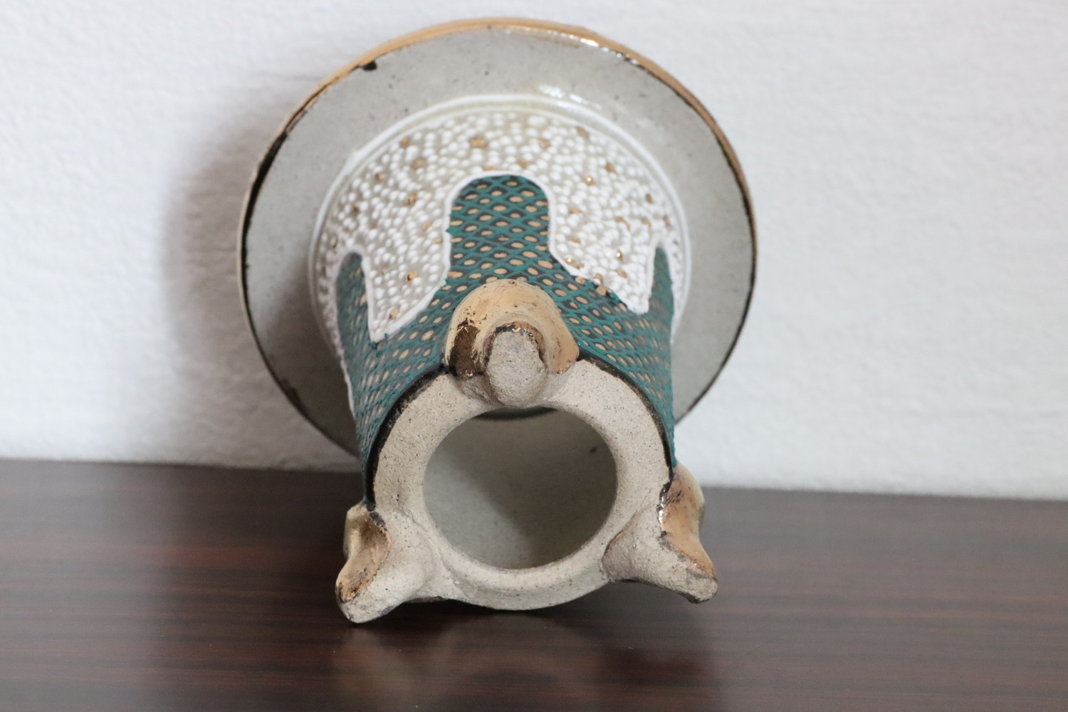 2074,手島風かけ流し 七々子にアラレ 外径約9.4cm