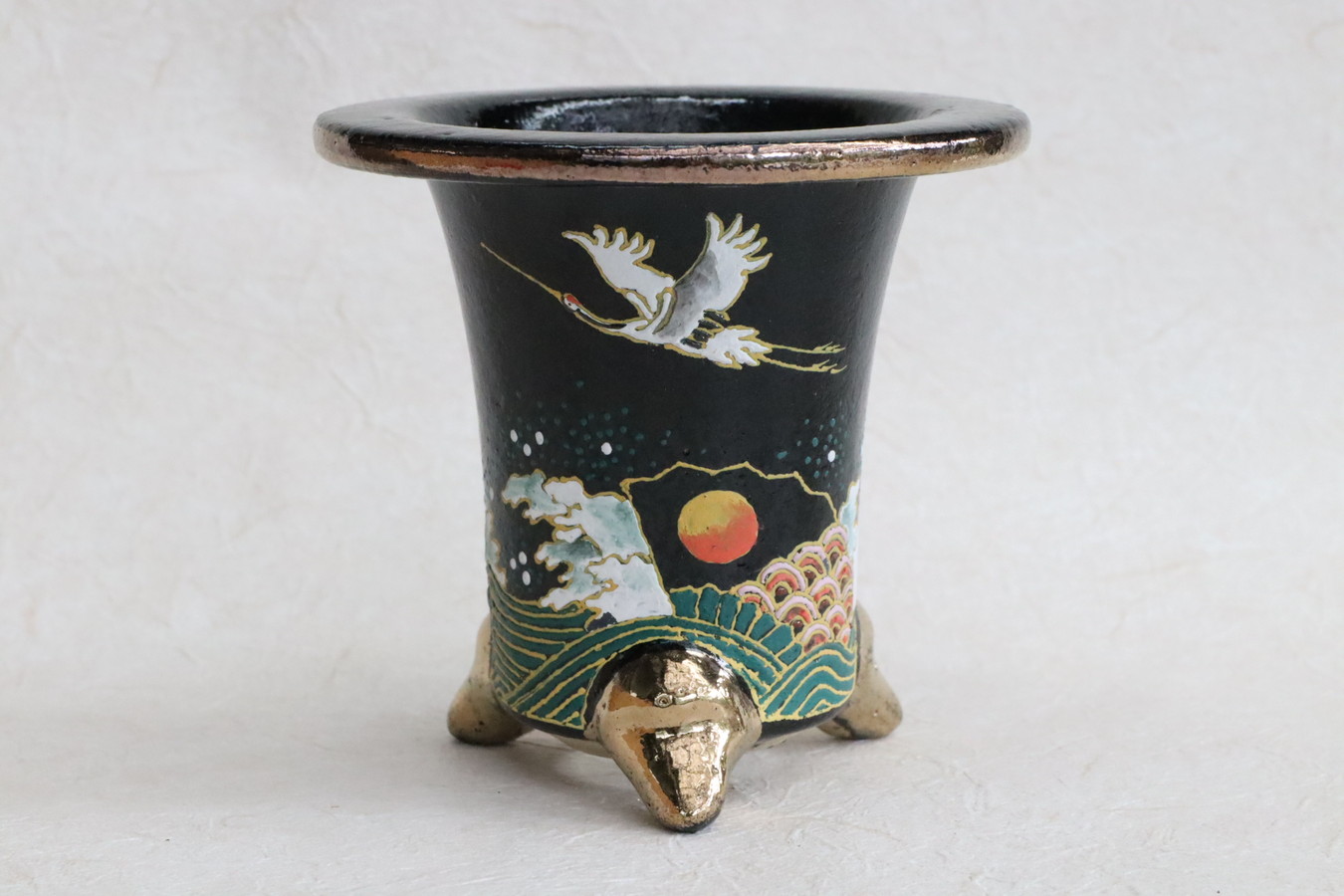 また、このプラ鉢とこの錦鉢の組み合わせなら、どの錦鉢でも入るので、今日は運気を上げたいから龍、夫婦仲良く鶴、落ち着いた水墨画を眺める、良いことが常に訪れる青海波と錦鉢で気分を変えていけます。