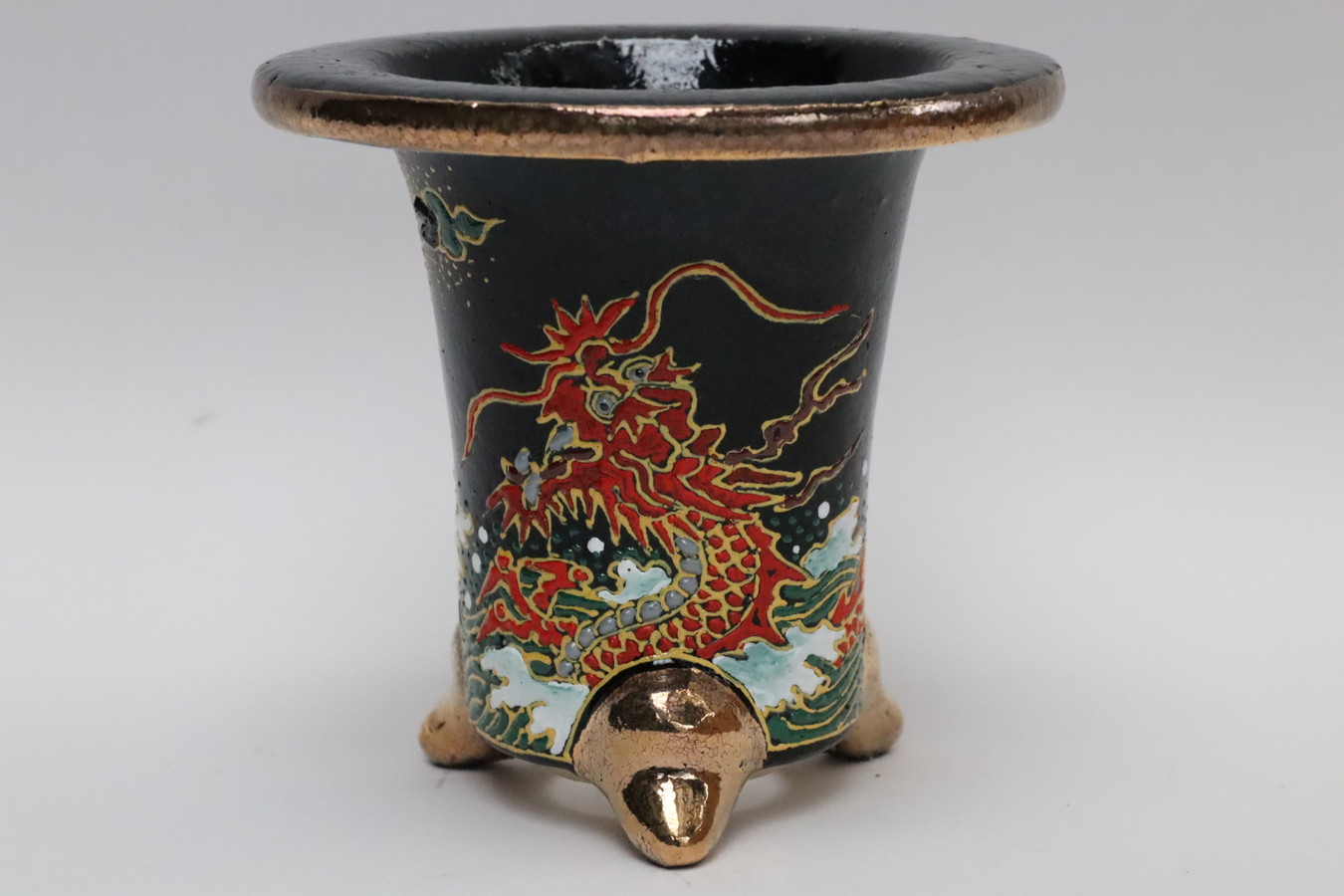 代々お付き合いのある窯元と試作を重ねてきましたが、焼き物の特性上、寸法は土、季節、その日の天気、湿度によっても変わり、自然に大きく左右されます。本当に腕がある作家さんがやってもこの寸法は時の運で、普段の鉢製作と比べてもロスは大幅に出てきます。それでも、この錦鉢で万年青を楽しむのは徳川家康公が万年青を楽しむ以前からと言われています。そんな日本の万年青の楽しみを是非多くの人に味わっていただきたく、なんとかここまで漕ぎ着けました。手に取っていただいて、万年青と錦鉢を楽しんでください。