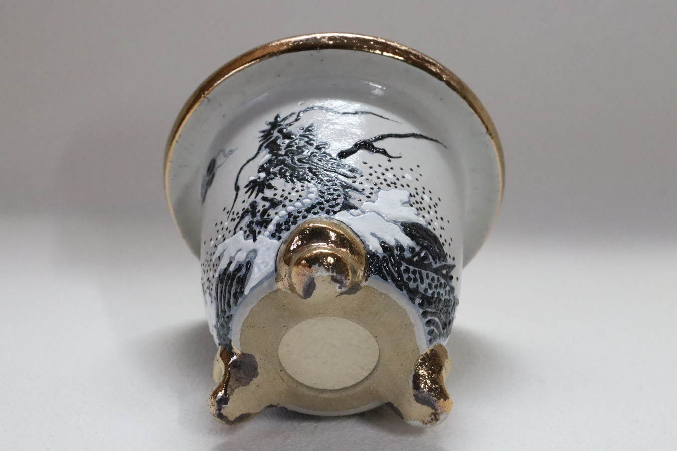 2397,白地黒龍 外径約10.1cm 高さ約8.7cm 亘サイン カバー鉢?