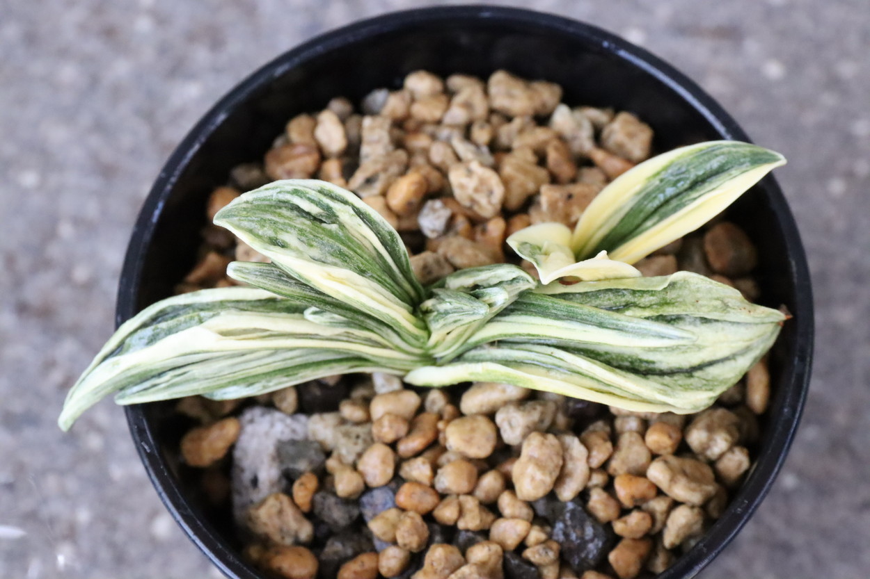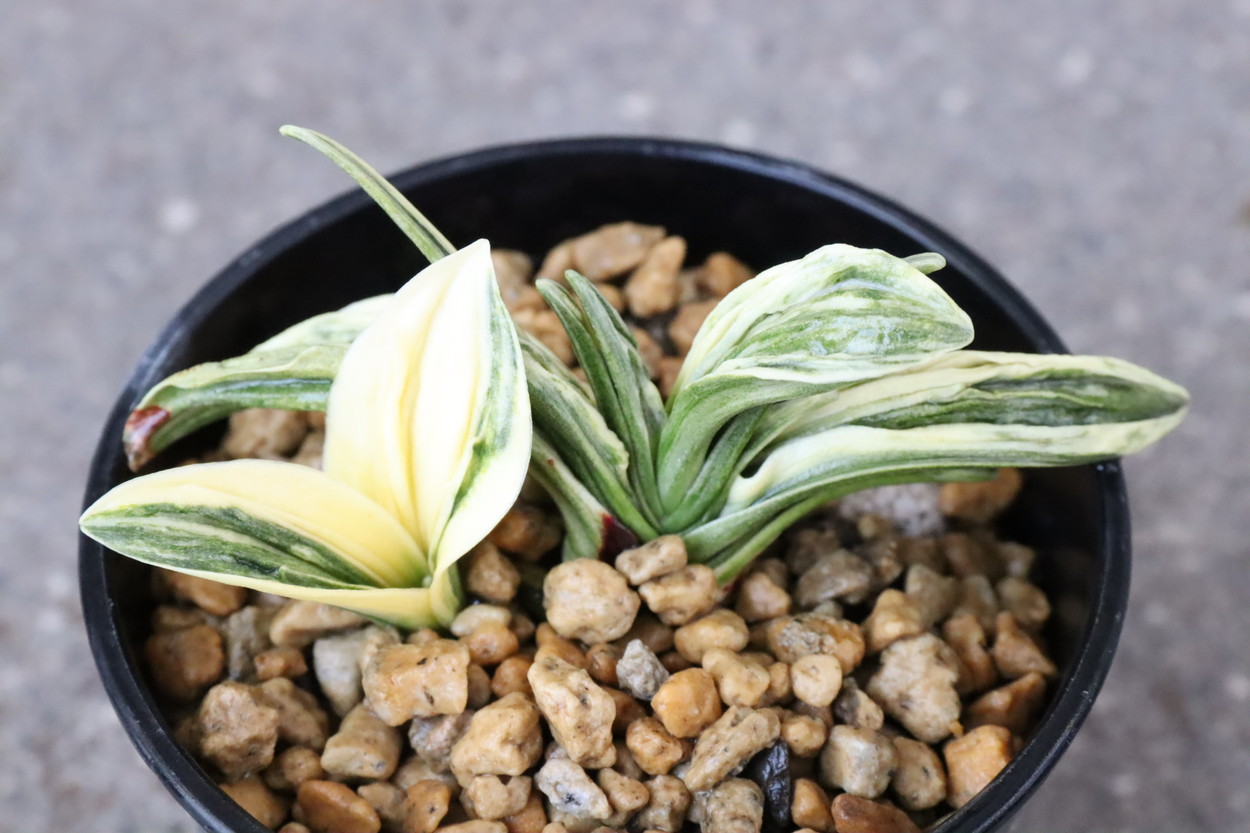 5457,整理品BC級品 瑞泉縞覆輪 瑞泉(ずいせん)の縞 【はきずはきれ大特価】※春から秋は生長期なので姿は変わっていきます