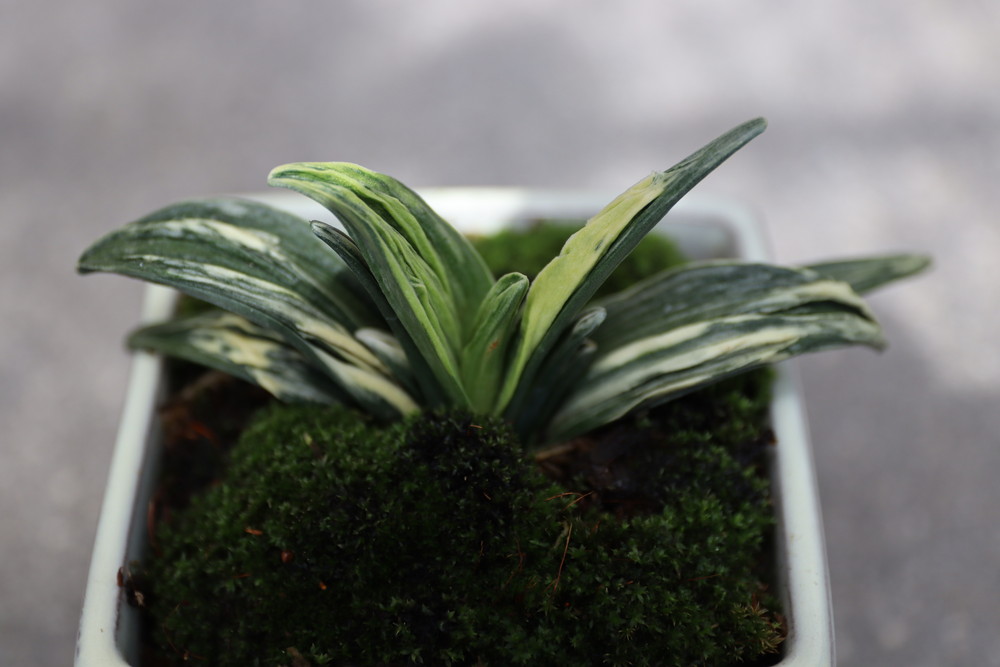 濃緑色の肉厚葉に雅糸竜、熨斗葉を現します。