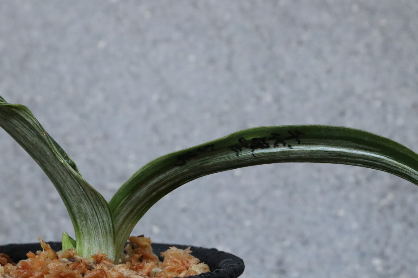 万年青は一つ殖えるのに5年とも10年ともいわれる、寿命の非常に長い植物です。一つ一つの苗でも1-3年ほどかけて育て上げています。その間には台風、猛暑、寒さ、自然の虫など様々な障害をへて育っていくので、完全に無傷の万年青はありません。人以上の寿命のある万年青。風邪を一度も引いたことがない、かすり傷も一度もない人がいないように、ちょっとした傷もある意味、懸命に生きている証。そんな風に考えていただけると有難いです。