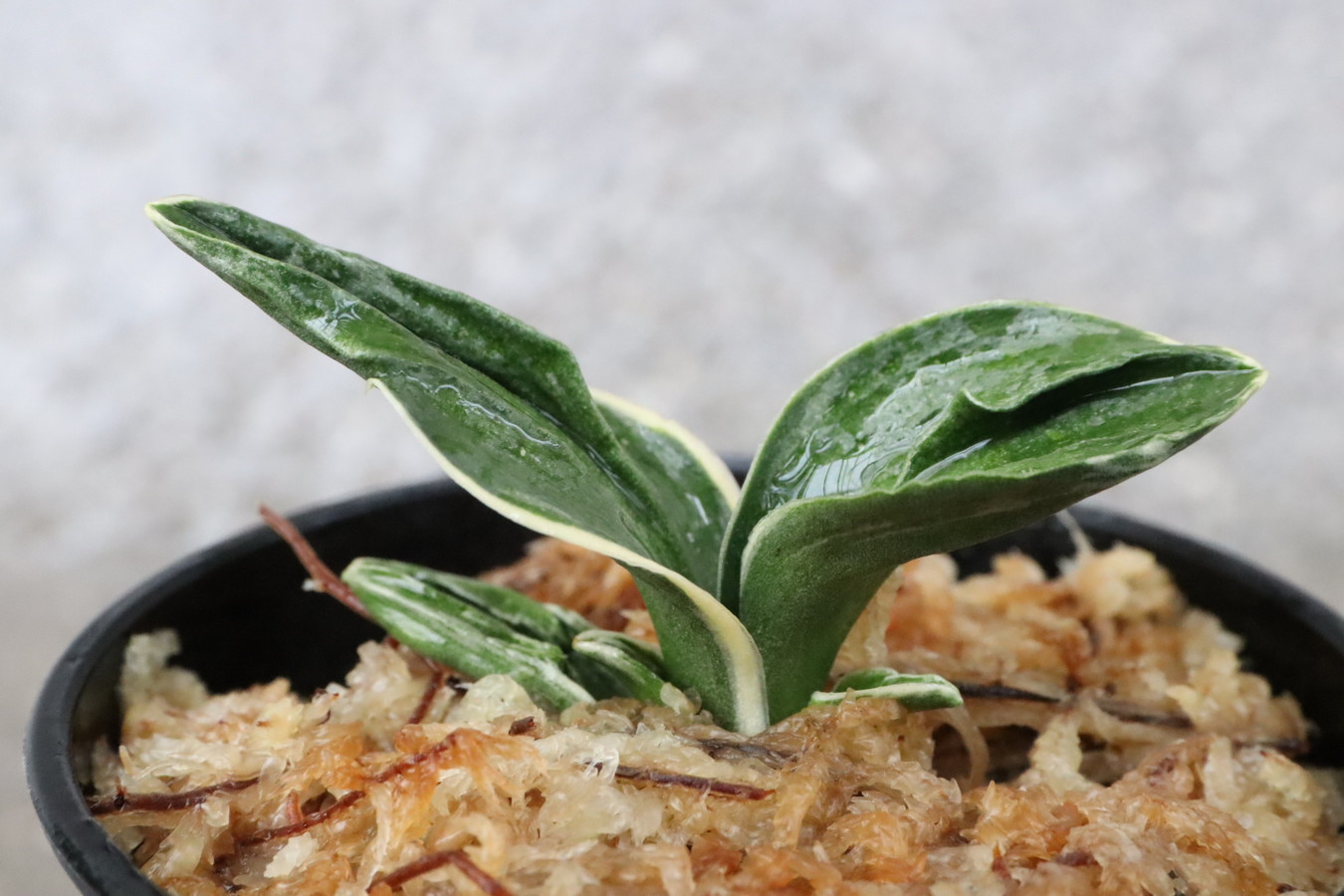 この品種の魅力は、「力和」でしか味わえない芸、丸葉の可愛らしい姿、その変化と、たくさんあります。杉山力蔵氏と岡田和吉氏が共有したため、『力和実生』と呼ばれ親しまれてました。昭和48年に待望の覆輪が完成。実生時代から常に人気で、三河地方では当時100万円以上の値が付いて、喧嘩するほどの奪い合いだったそうです(豊明園2代目談)。