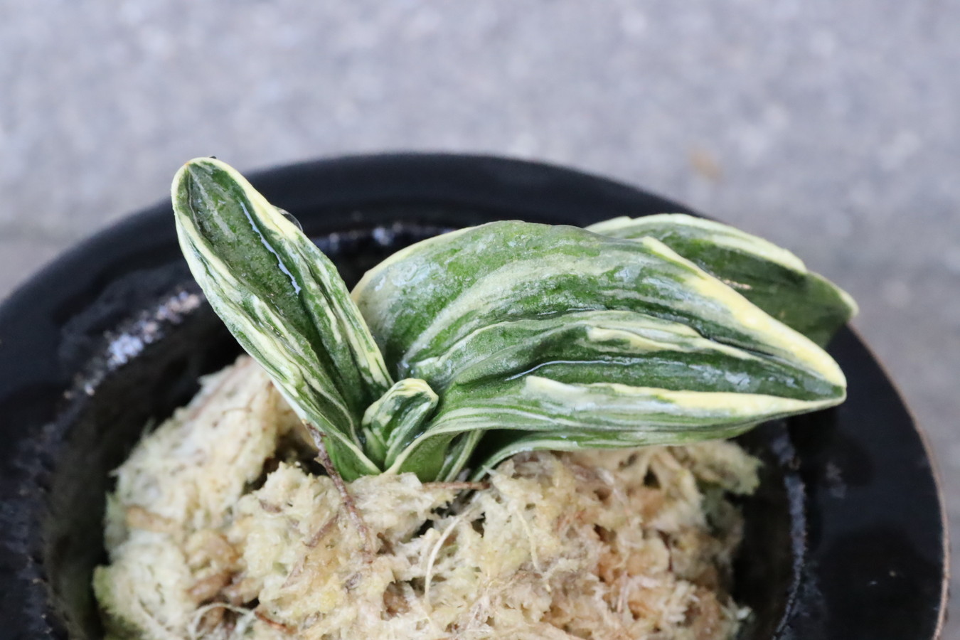この品種の魅力は、「力和」でしか味わえない芸、丸葉の可愛らしい姿、その変化と、たくさんあります。杉山力蔵氏と岡田和吉氏が共有したため、『力和実生』と呼ばれ親しまれてました。昭和48年に待望の覆輪が完成。実生時代から常に人気で、三河地方では当時100万円以上の値が付いて、俺が買う、いや俺が、という喧嘩するほどの奪い合いだったそうです(豊明園2代目談)。