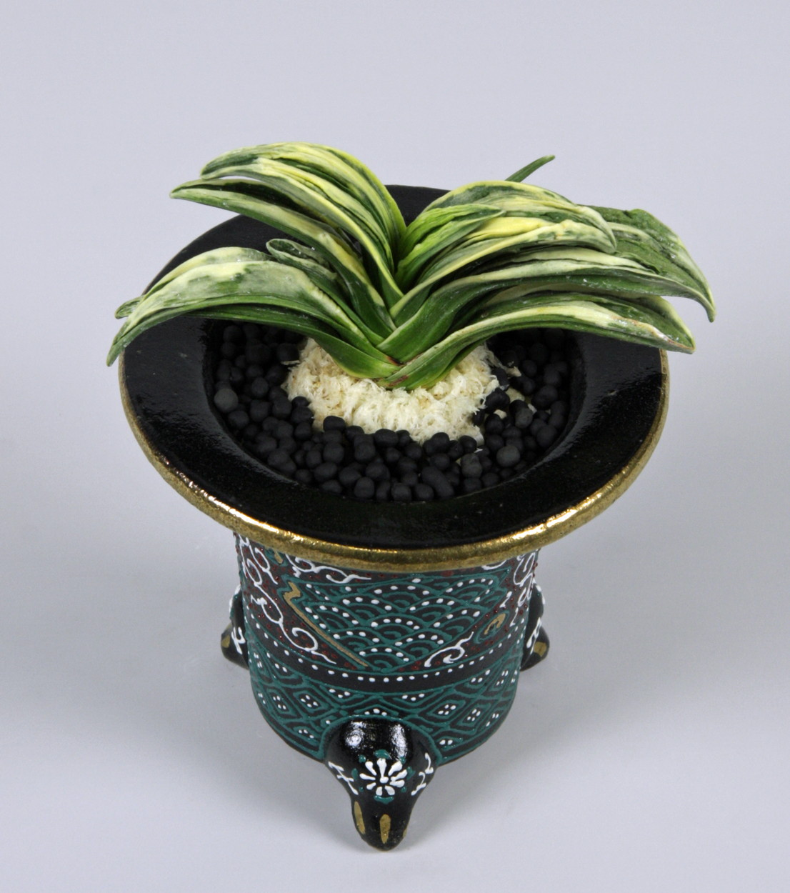 濃緑色の肉厚葉に雅糸竜、熨斗葉を現します。
