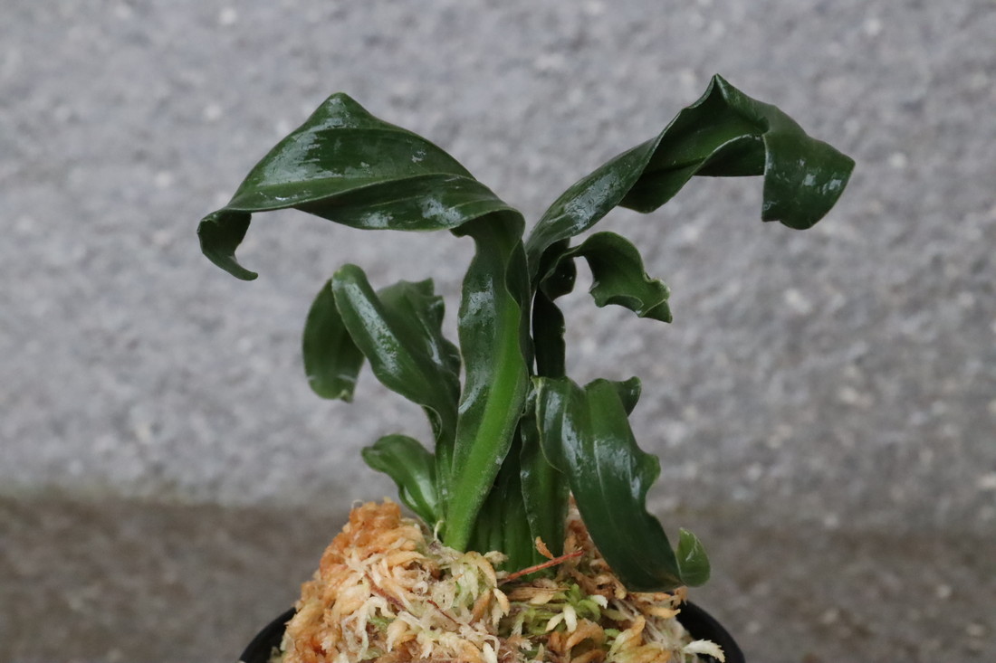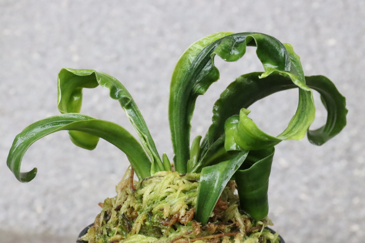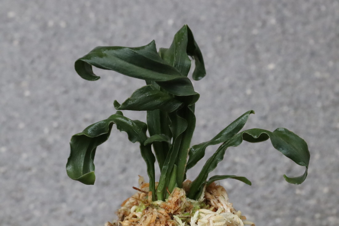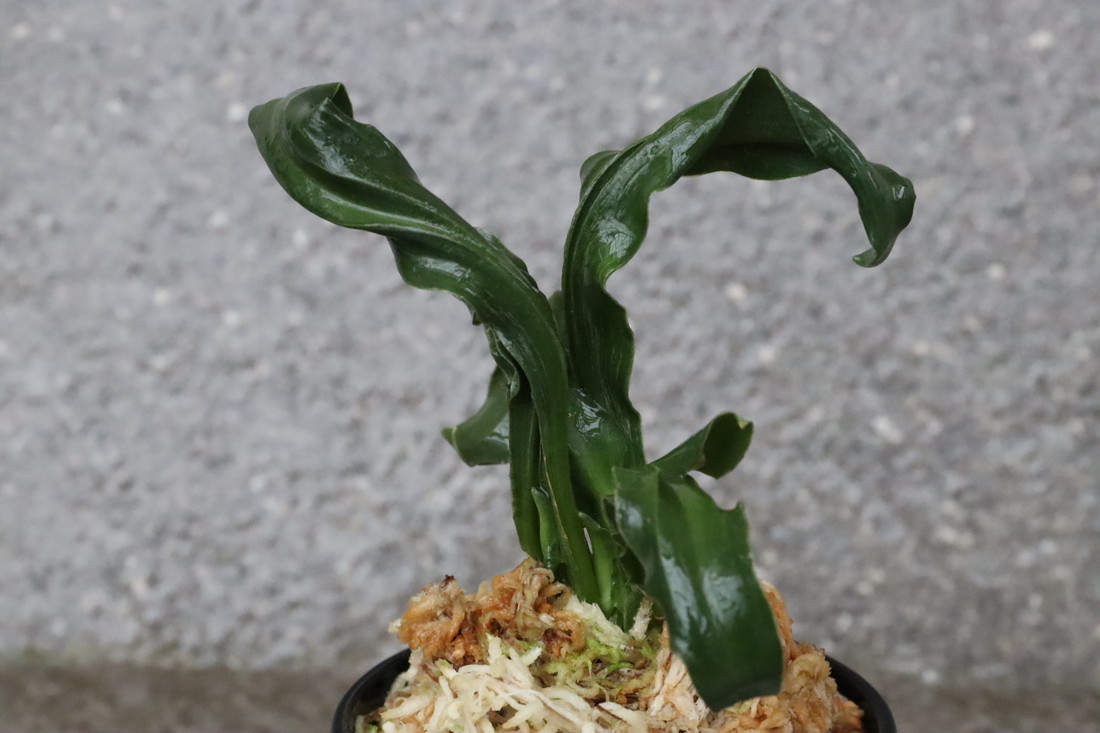 逆鉾芸をもった変わり獅子。葉幅2㎝内外、葉長15㎝ほどの細長い葉が、逆鉾芸を現すことで他の獅子では味わえない奇天烈な巻を現す珍品。葉の両面に見せる雅糸竜、「逆鉾」などの様々な芸がより一層賑やかさをみせ、福笑いのような姿。性質は強健、採光、施肥は普通から強め。子上げも良い。