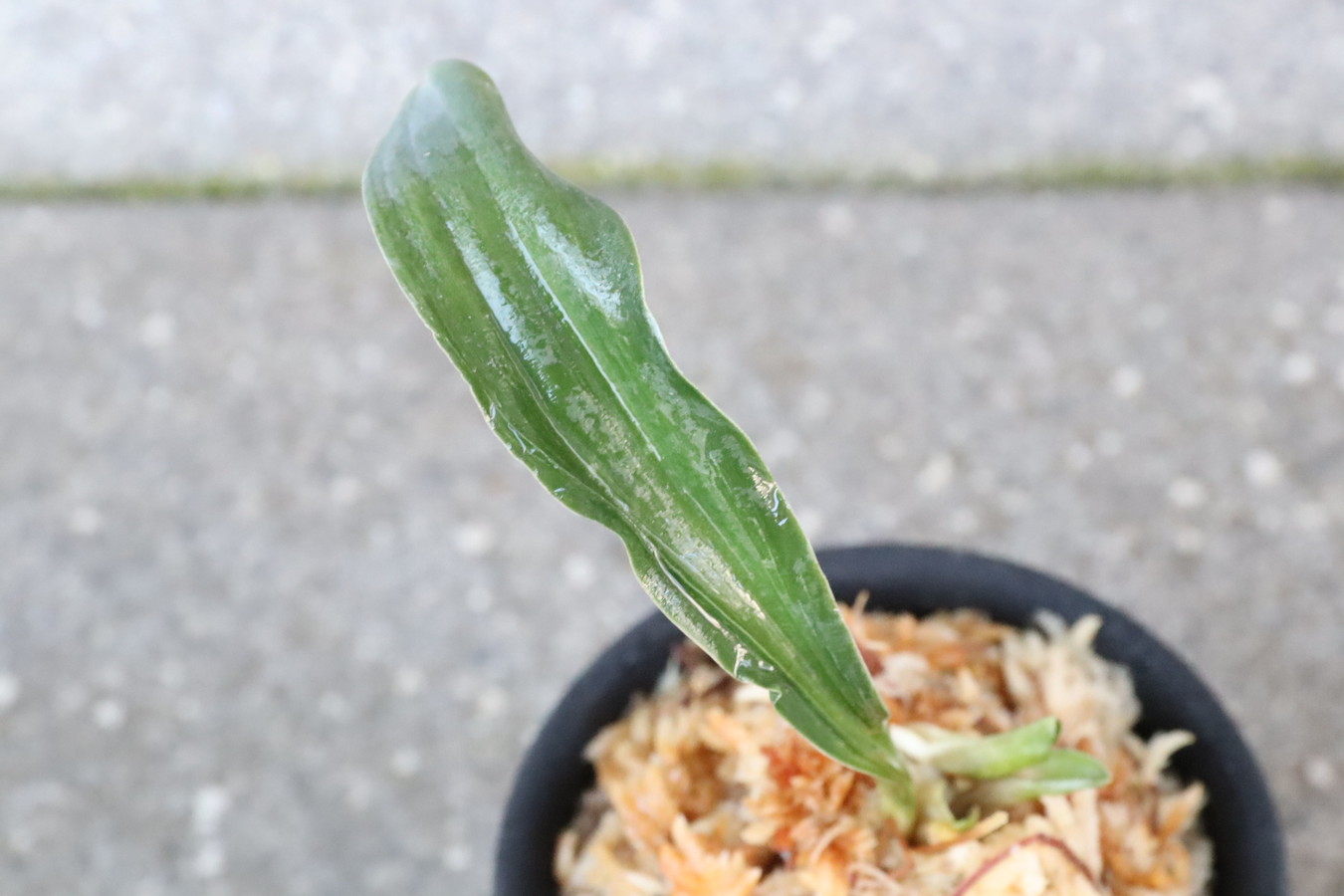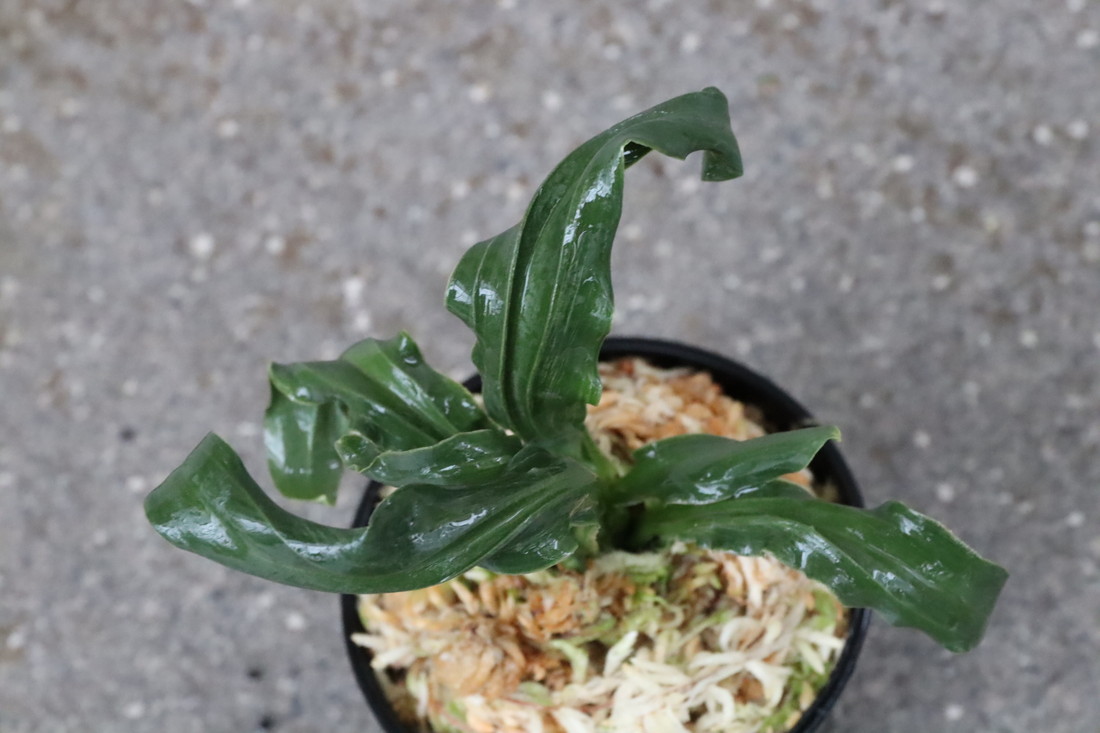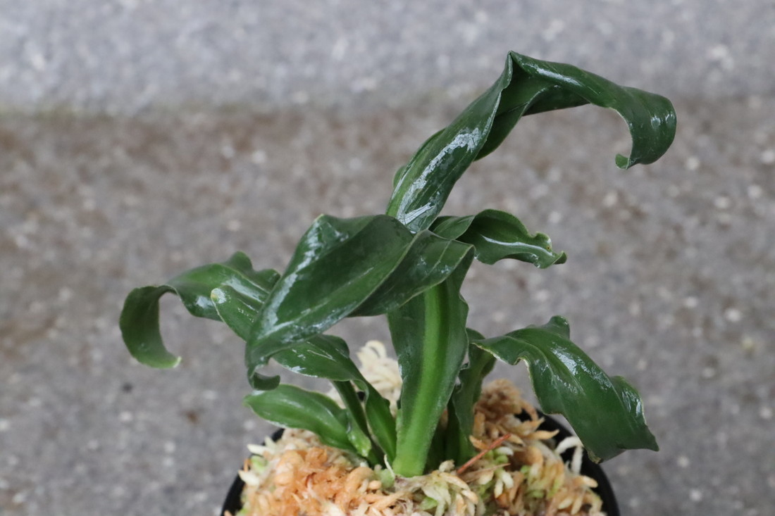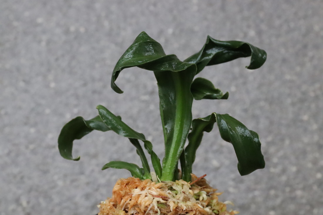 逆鉾芸をもった変わり獅子。葉幅2㎝内外、葉長15㎝ほどの細長い葉が、逆鉾芸を現すことで他の獅子では味わえない奇天烈な巻を現す珍品。葉の両面に見せる雅糸竜、「逆鉾」などの様々な芸がより一層賑やかさをみせ、福笑いのような姿。性質は強健、採光、施肥は普通から強め。子上げも良い。