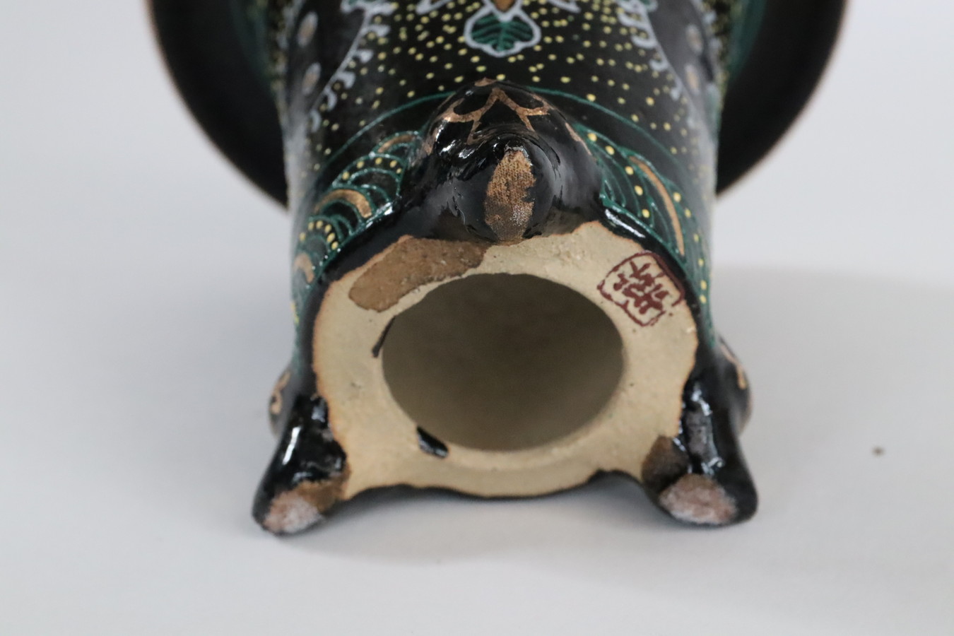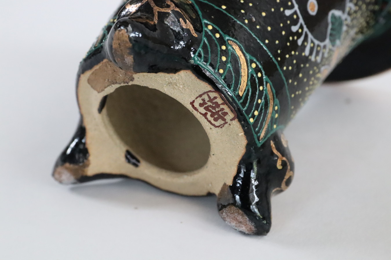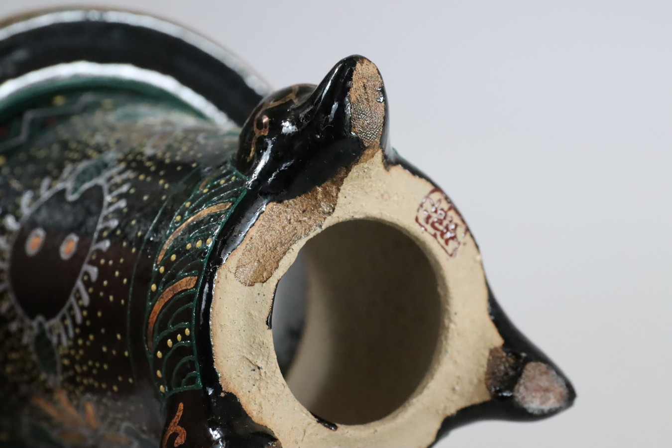 2224,五龍吉祥 外径約9.2cm 華サイン 黒の艶よい 【38000→大特価!】