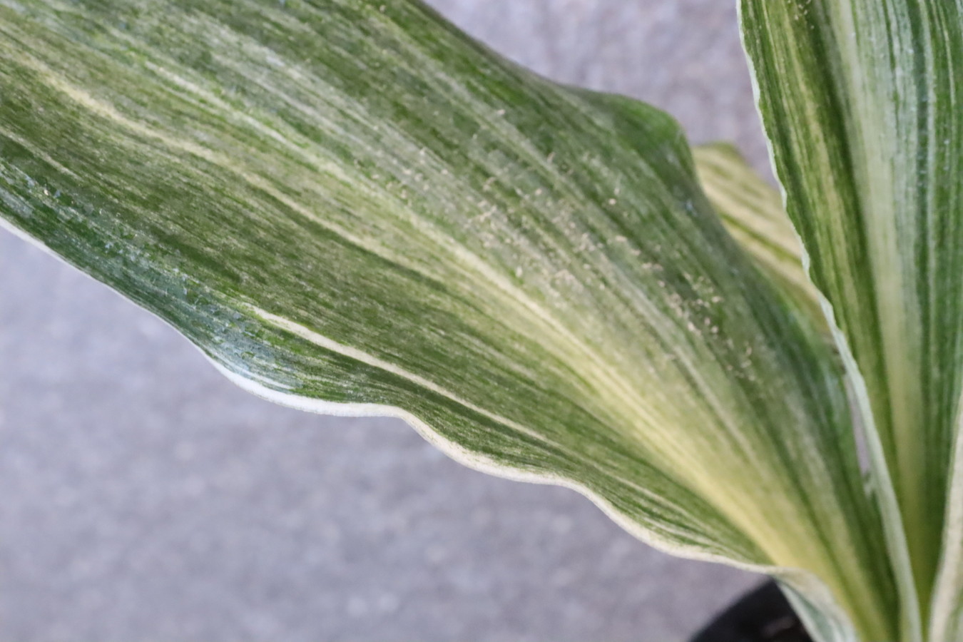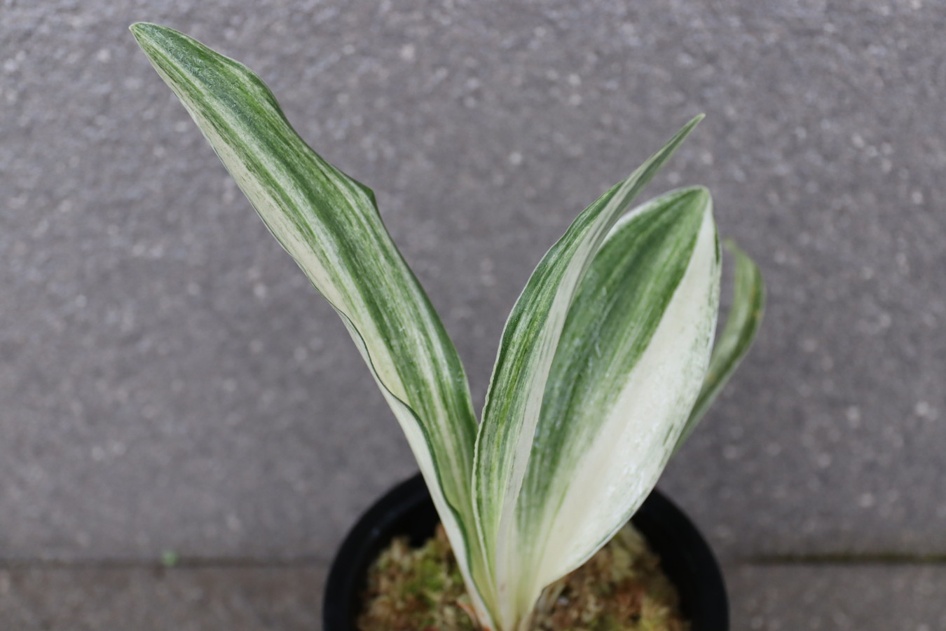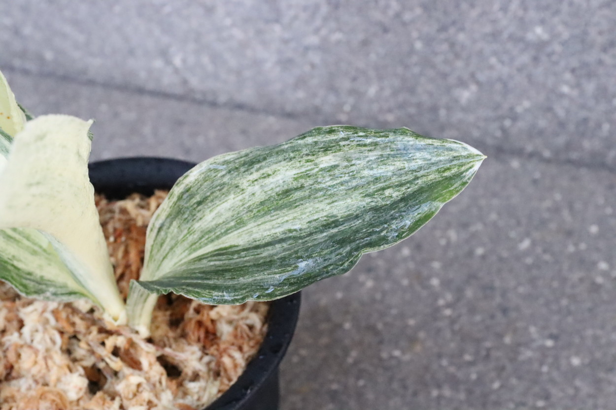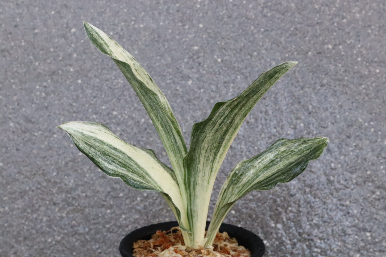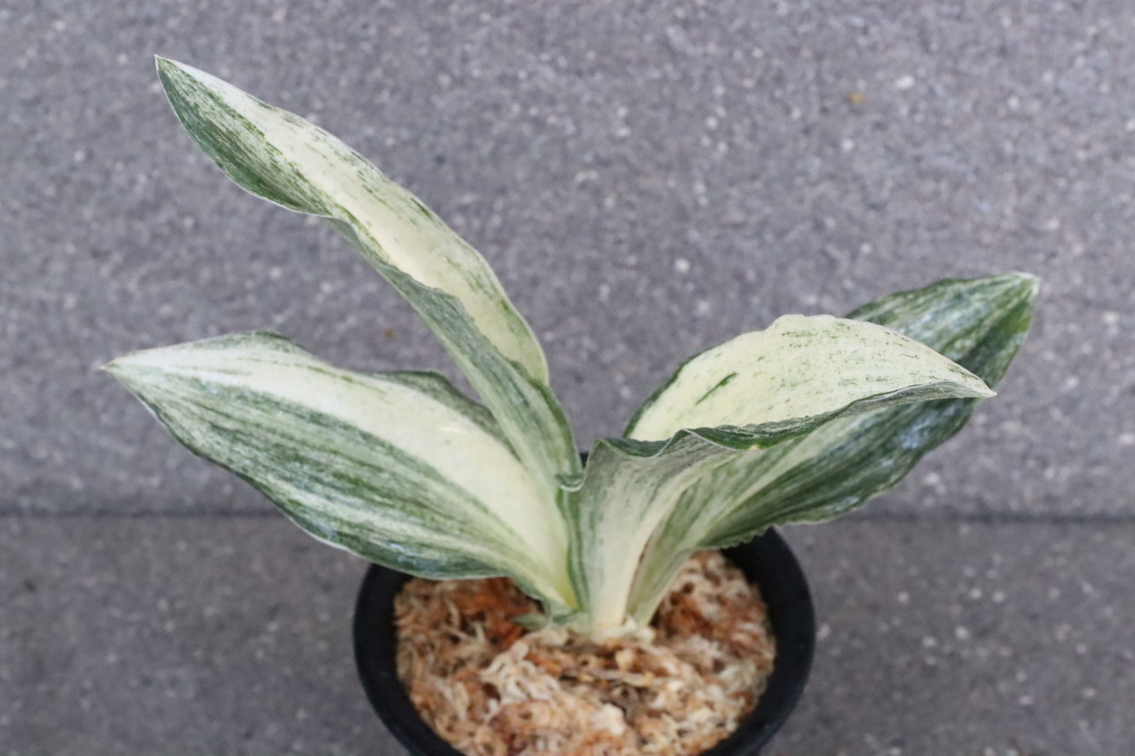 広い葉巾に白斑を見せる、清々しく雄大な品種。