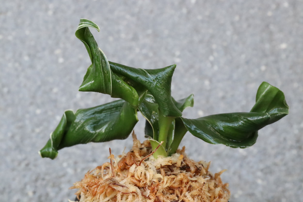 濃緑色の角巻き葉に低い総雅糸竜と二面甲竜をみせる美しい品種。