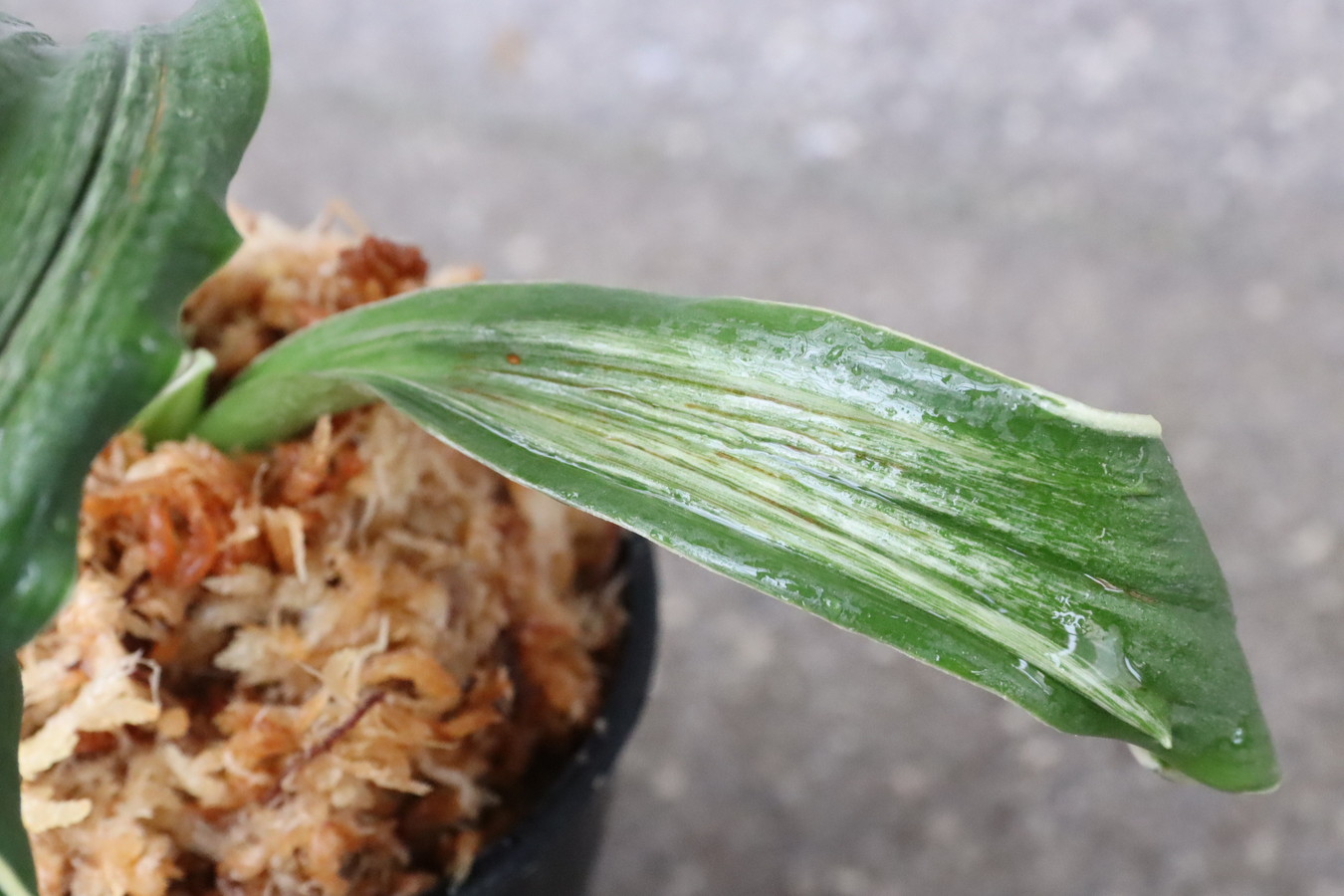 万年青は一つ殖えるのに5年とも10年ともいわれる、寿命の非常に長い植物です。一つ一つの苗でも1-3年ほどかけて育て上げています。その間には台風、猛暑、寒さ、自然の虫など様々な障害をへて育っていくので、完全に無傷の万年青はありません。人以上の寿命のある万年青。風邪を一度も引いたことがない、かすり傷も一度もない人がいないように、ちょっとした傷もある意味、懸命に生きている証。そんな風に考えていただけると有難いです。
