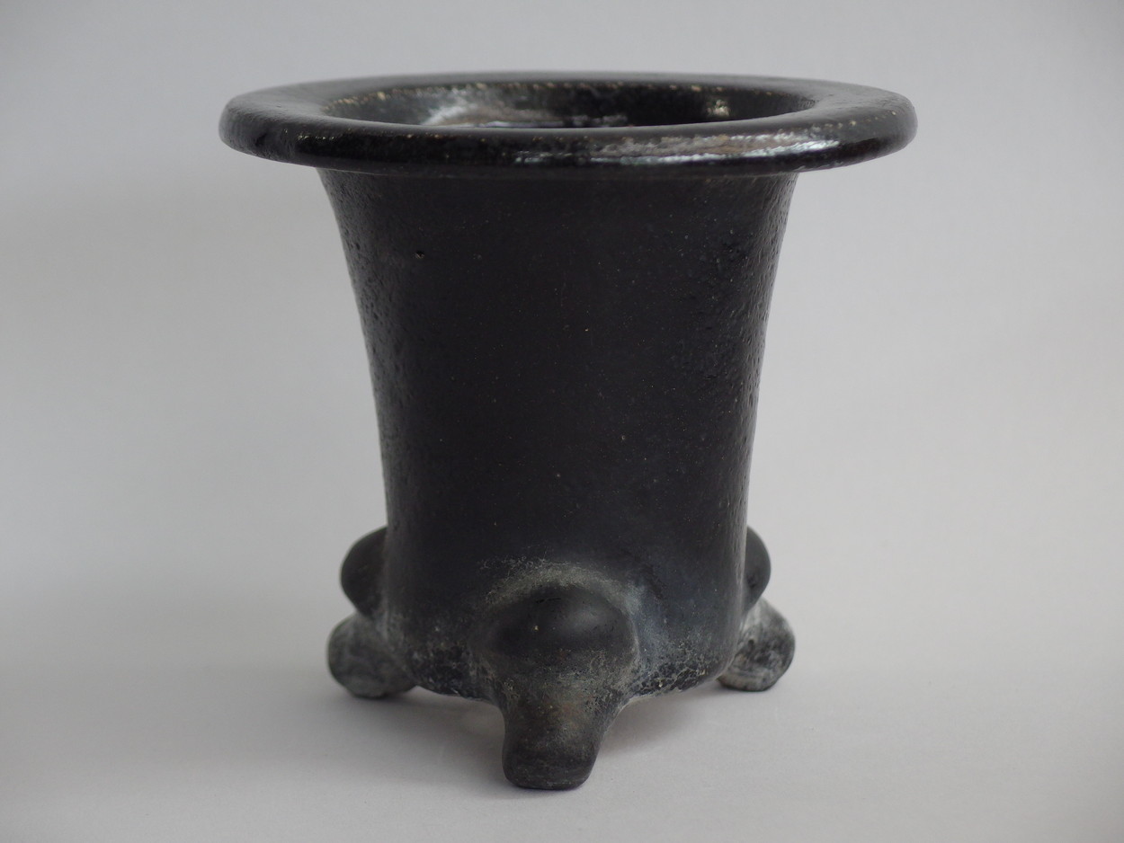 3013, 古鉢 黒鉢 萬年青楽鉢 外径約11.4cm 中古